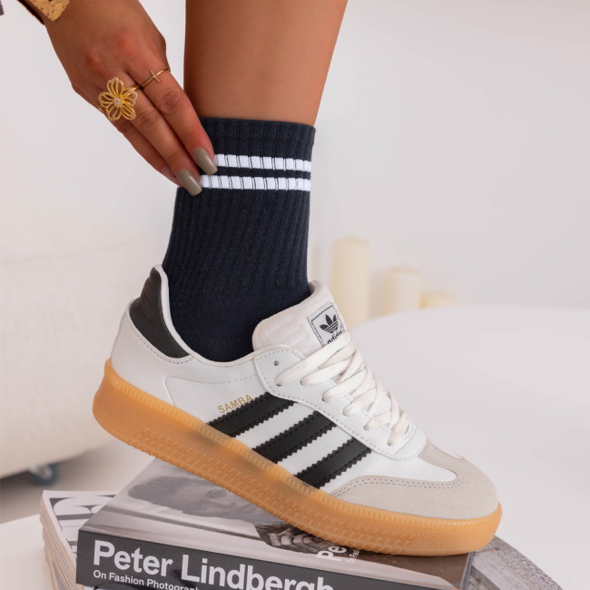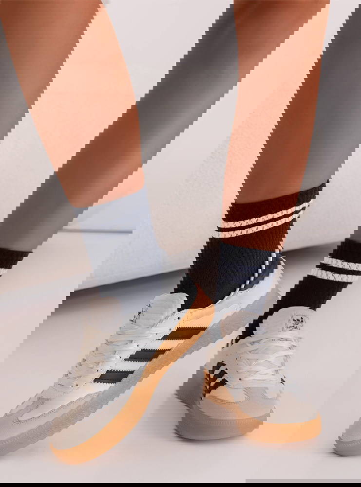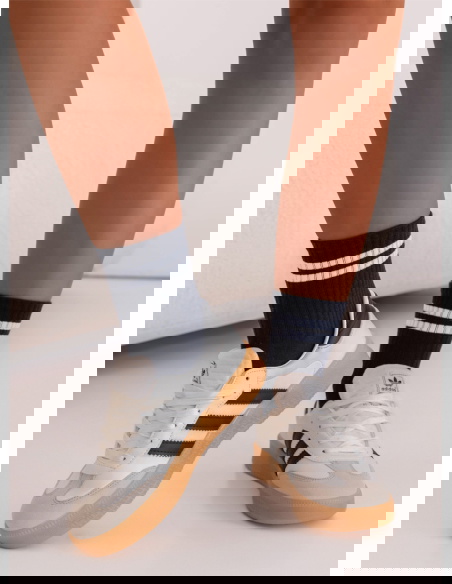 Granatowe skarpetki z paskami Janarare to klasyczny, a zarazem stylowy dodatek, który idealnie uzupełnia codzienne stylizacje. Ich ciemny kolor sprawia, że świetnie komponują się z różnymi rodzajami obuwia. Kontrastujące białe paski dodają całości sportowego charakteru. To propozycja, która łączy prostotę z modnym akcentem. Skarpetki są wygodne i uniwersalne, dzięki czemu łatwo dopasować je do wielu zestawów. Subtelny wzór w postaci pasków przyciąga uwagę, nie dominując jednak nad całością stylizacji. Długość skarpetek sprawia, że dobrze prezentują się zarówno do sneakersów, jak i bardziej casualowych butów. Granatowy kolor to ponadczasowy wybór, który zawsze wygląda schludnie. To model, który łączy funkcjonalność i estetykę. Dzięki nim codzienne stylizacje zyskują spójny, modny charakter.