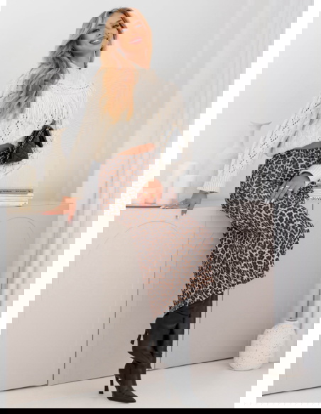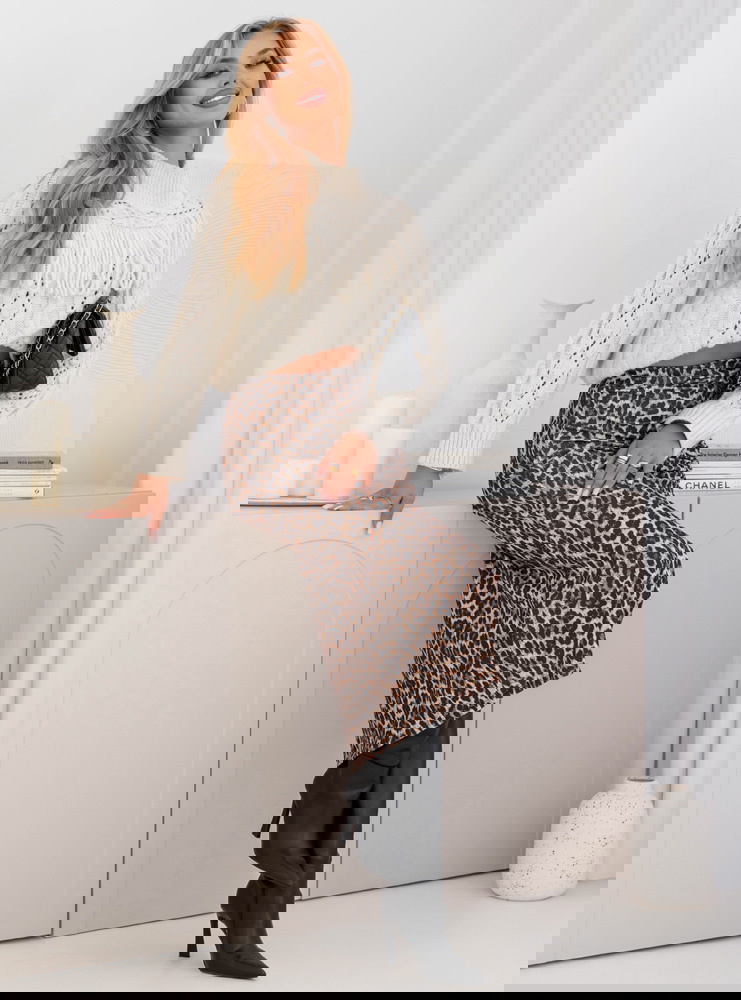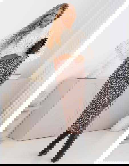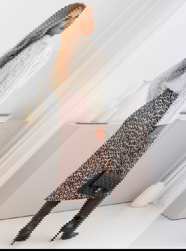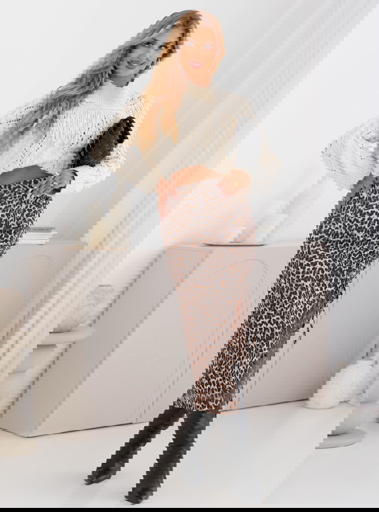 Dopasowana spódnica midi z rozcięciem Ottolia - wzór 3 to model, który doskonale łączy w sobie kobiecość i nowoczesny charakter. Jej fason pięknie podkreśla sylwetkę, nadając jej eleganckiego wyrazu. Rozcięcie z boku sprawia, że całość nabiera lekkości i delikatnej nuty zmysłowości. To spódnica, która z powodzeniem stanie się głównym elementem każdej stylizacji. Wzór w panterkę dodaje jej wyrazistości i oryginalnego charakteru. To propozycja, która pozwala wyróżnić się z tłumu i pokazać odważny styl. Spódnica midi to długość niezwykle uniwersalna i ponadczasowa. Świetnie wpisuje się zarówno w codzienne, jak i bardziej eleganckie zestawienia. Jej dopasowany krój podkreśla atuty sylwetki, a jednocześnie zapewnia komfort noszenia. To wybór dla kobiet, które chcą czuć się pewnie i wyglądać stylowo w każdej sytuacji.
