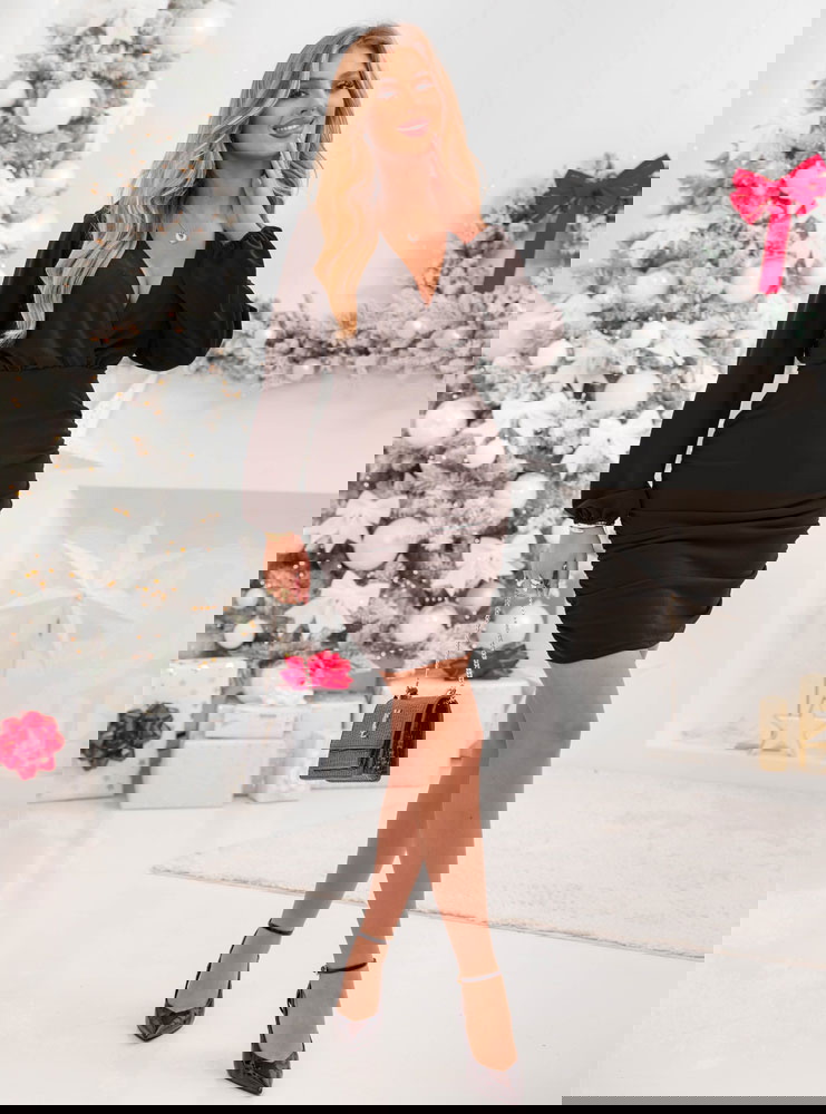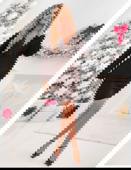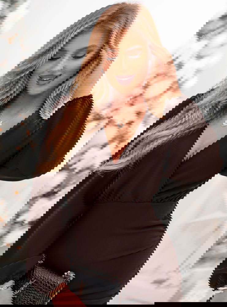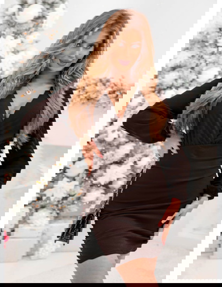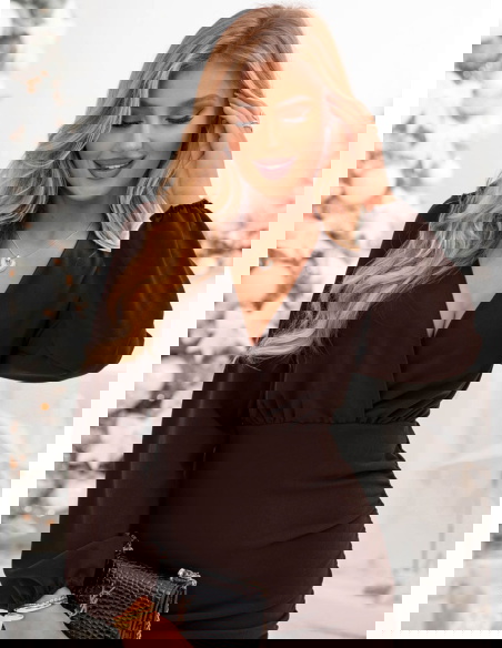 Czekoladowa sukienka mini z przekładanym dekoltem Jereyne