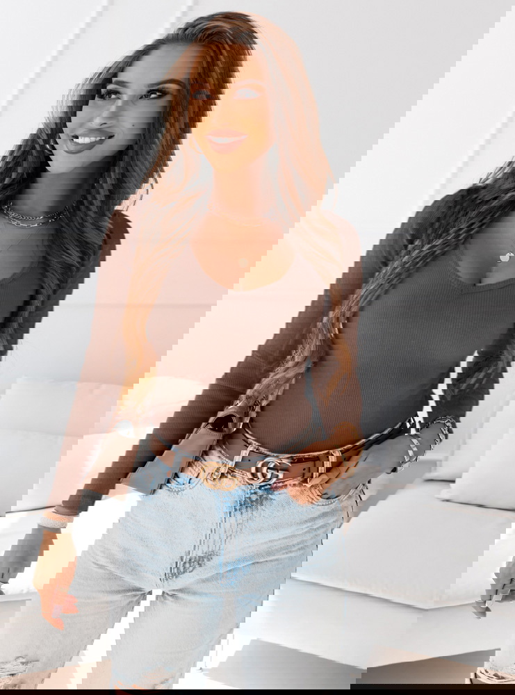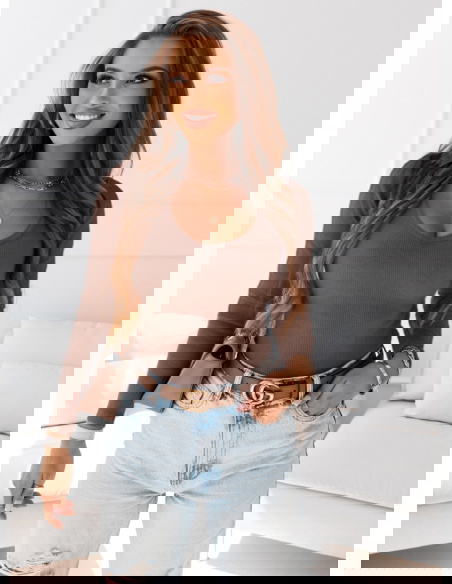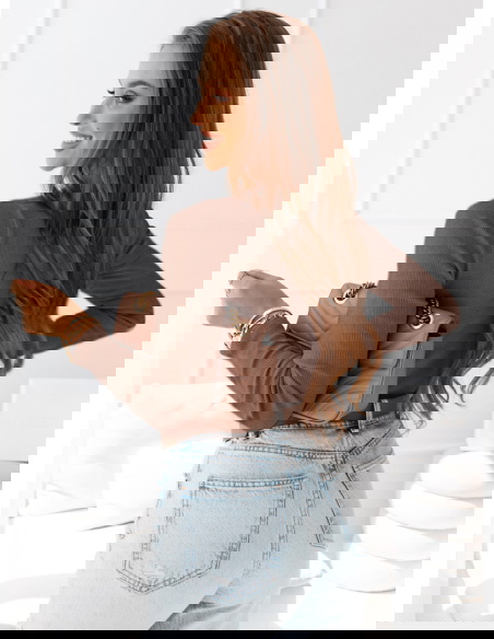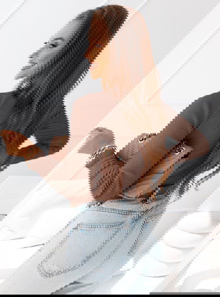 Prążkowana bluzka z dekoltem w serek Teriia - mocha mousse to must-have w kobiecej garderobie. Jej dopasowany fason pięknie podkreśla sylwetkę i dodaje pewności siebie. Neutralny odcień sprawia, że bluzka jest niezwykle uniwersalna i ponadczasowa. To propozycja, która sprawdzi się w wielu sytuacjach – od codziennych po bardziej eleganckie. Prążkowana struktura nadaje jej modnego akcentu i lekkości. To bluzka, która łączy kobiecość, wygodę i styl. Dzięki niej każda stylizacja nabierze wyjątkowego charakteru.