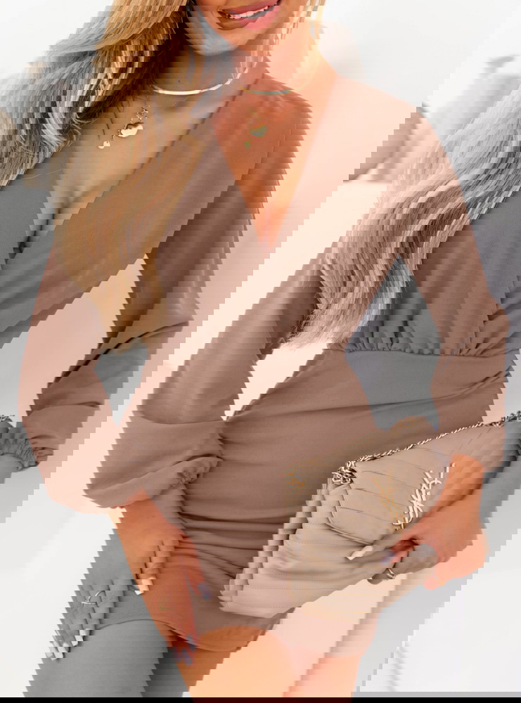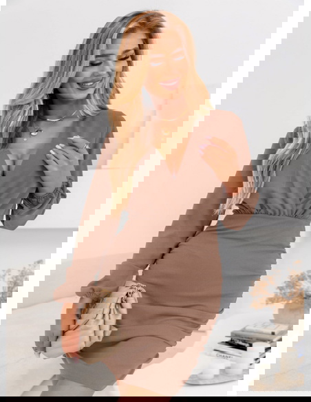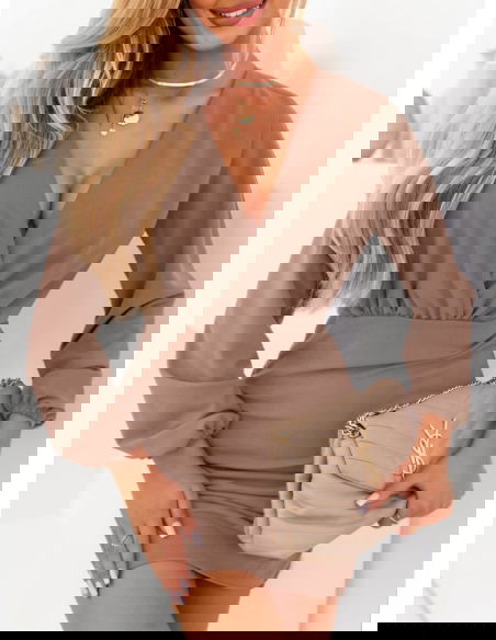 Sukienka mini z przekładanym dekoltem Cerys - mocha mousse