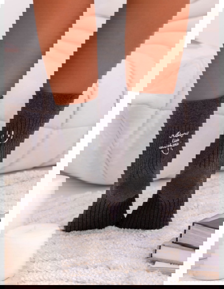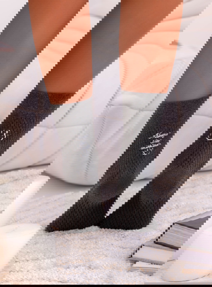 Grafitowe skarpetki z ozdobnym napisem Deboria