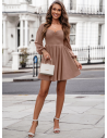 Czekoladowa sukienka z marszczeniem na dekolcie Celina