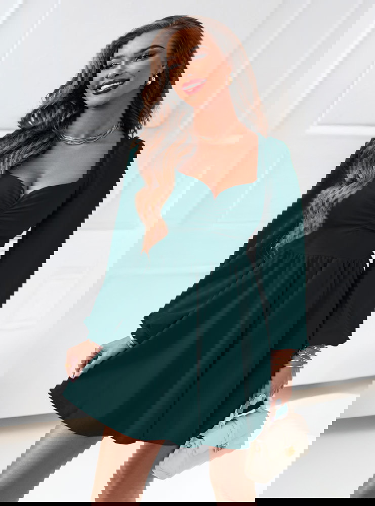 Sukienka z marszczeniem na dekolcie Qiannah - butelkowa zieleń to propozycja, która wyróżnia się elegancją i uniwersalnością. Jej krój sprawia, że wygląda doskonale na każdej sylwetce. Marszczenie przy dekolcie nadaje całości wyjątkowego uroku. Rozkloszowany dół dodaje lekkości, a długie rękawy zapewniają równowagę i ponadczasową klasę. Kolor butelkowej zieleni podkreśla stylizację i nadaje jej wyjątkowego charakteru. To sukienka, która sprawdzi się zarówno na co dzień, jak i na specjalne okazje. Z pewnością stanie się jednym z ulubionych elementów Twojej garderoby.