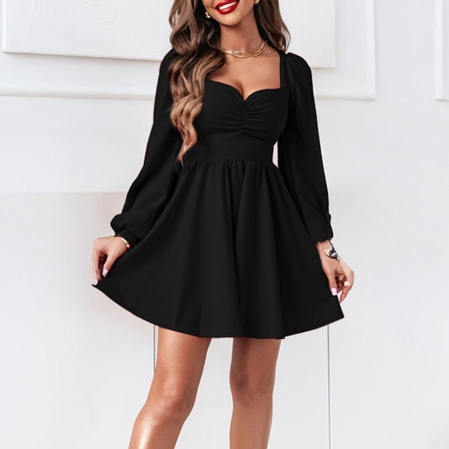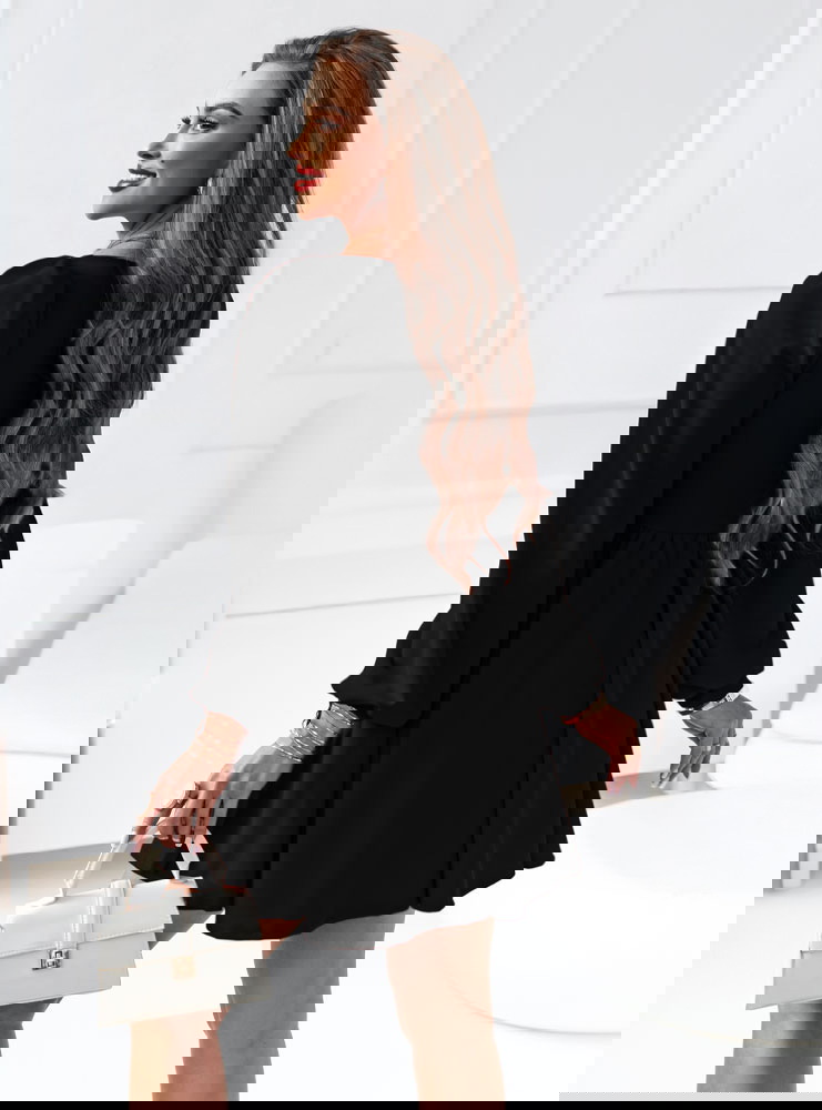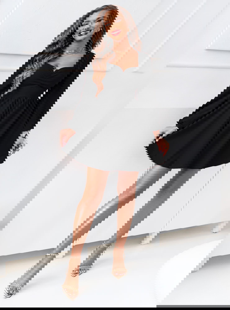 Czarna sukienka z marszczeniem na dekolcie Qiannah to klasyka, która nigdy nie wychodzi z mody. Czerń to synonim elegancji, szyku i ponadczasowego stylu. Dzięki swojemu prostemu, a zarazem wyjątkowemu krojowi, sukienka idealnie podkreśla atuty sylwetki. Dekolt z delikatnym marszczeniem nadaje całości subtelnego, kobiecego uroku. Długie rękawy równoważą całą stylizację, sprawiając, że sukienka prezentuje się z klasą. Rozkloszowany dół nadaje lekkości, tworząc piękny efekt przy każdym ruchu. To sukienka, która łączy prostotę z nutą romantyzmu. Dzięki uniwersalnemu kolorowi możesz nosić ją zarówno na eleganckie, jak i mniej formalne okazje. Czerń pasuje do wszystkiego – wystarczy dobrać odpowiednie dodatki, aby za każdym razem wyglądać inaczej. To must-have w kobiecej garderobie, który zawsze sprawdzi się, gdy chcesz wyglądać zjawiskowo.