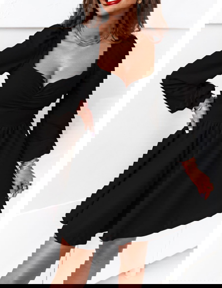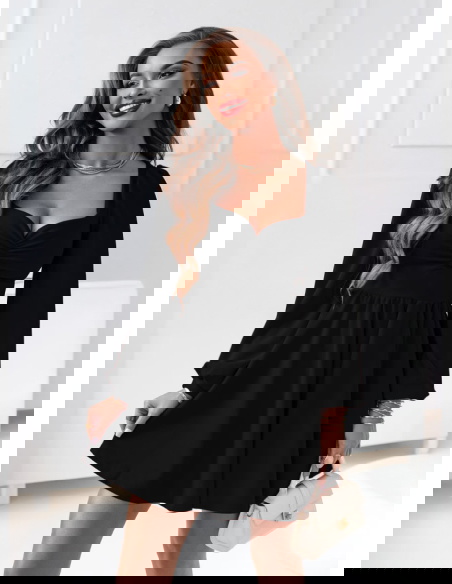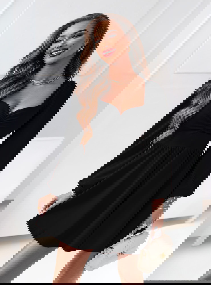 Czarna sukienka z marszczeniem na dekolcie Qiannah
