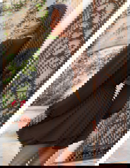 Czekoladowa szyfonowa sukienka mini z przekładanym dekoltem Aspasia to kwintesencja stylu i kobiecości. Jej lekki materiał i warstwowy dół nadają całości zwiewności. Przekładany krój dekoltu oraz pasek w talii pięknie podkreślają figurę. To sukienka, w której poczujesz się zarówno komfortowo, jak i wyjątkowo. Pasuje do wielu okazji – od romantycznych kolacji po letnie spotkania. Jej czekoladowy kolor sprawia, że wyróżnia się spośród klasycznych propozycji. To kreacja, która podkreśli Twój wdzięk i doda stylizacji niepowtarzalnego uroku.