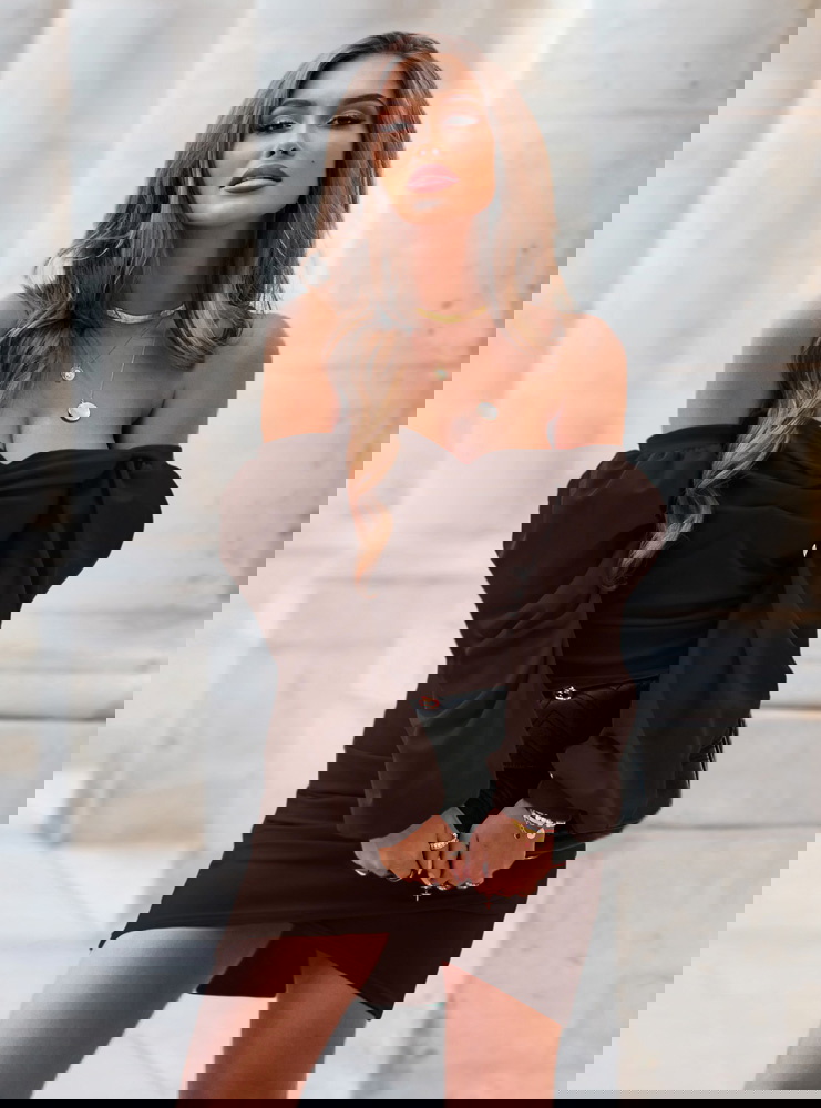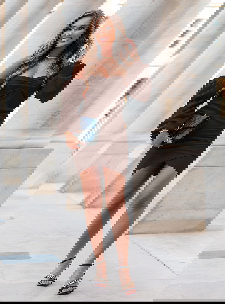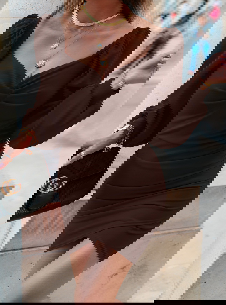 Czekoladowa sukienka z dekoltem w serce i marszczeniem z boku Neriioo to model, który podkreśla kobiecość w wyjątkowo zmysłowy sposób. Jej fason został zaprojektowany tak, aby subtelnie eksponować atuty sylwetki. Dekolt w kształcie serca pięknie uwydatnia biust i dodaje całości romantycznego charakteru. Długie, lekko bufiaste rękawy nadają sukience elegancji i lekkości. Marszczenie z boku to detal, który nie tylko zdobi, ale także wysmukla talię i biodra. Krój mini eksponuje nogi, nadając całości świeżości i lekkości. To sukienka, w której każda kobieta poczuje się wyjątkowo i stylowo. Głęboki, czekoladowy odcień sprawia, że model prezentuje się niezwykle elegancko. To kreacja idealna dla kobiet, które cenią wyrafinowany wygląd z nutą nowoczesności. Całość łączy w sobie szyk, komfort i odrobinę kokieterii.
