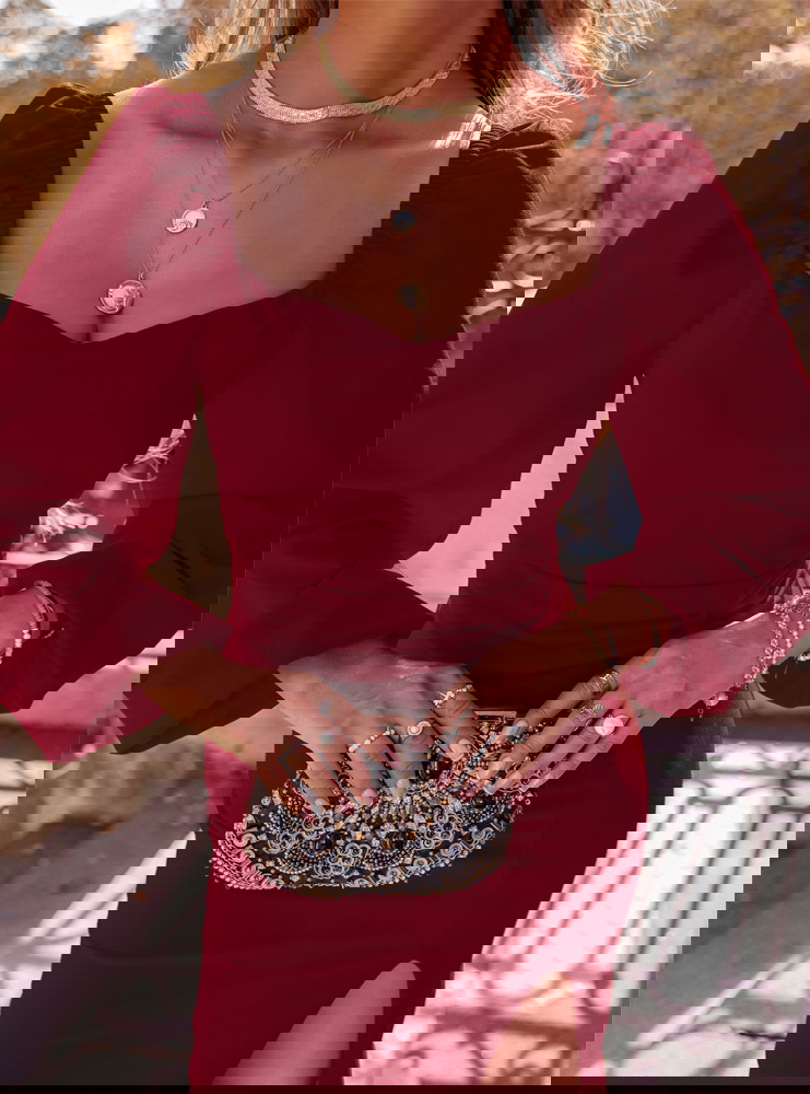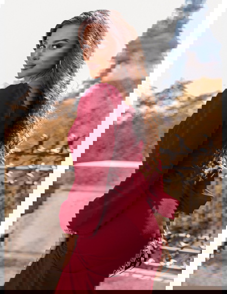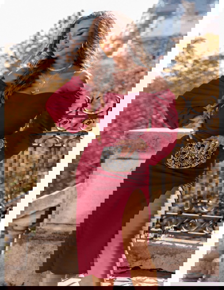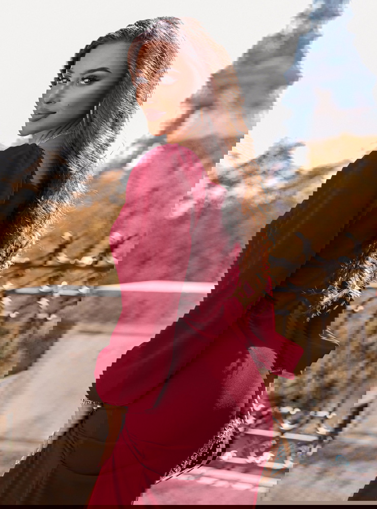 Bordowa sukienka z rozcięciem Darda to propozycja, która od pierwszej chwili zachwyca elegancją i wyjątkowym kolorem. Odcień bordo to klasyka, która zawsze wygląda szykownie i niezwykle kobieco. To barwa symbolizująca pewność siebie, zmysłowość i niepowtarzalny urok. Sukienka doskonale podkreśla sylwetkę, a jej krój sprawia, że figura prezentuje się jeszcze smuklej. Rozcięcie na nodze dodaje całości lekkości i przyciąga uwagę subtelną odwagą. To element, który podkreśla nowoczesny charakter tej kreacji. Sukienka zachwyca prostotą, a jednocześnie wyróżnia się wyjątkowym stylem. Dzięki niej każda kobieta może poczuć się niezwykle atrakcyjnie i elegancko. To model, który nie potrzebuje wielu dodatków, by prezentować się efektownie. W tej sukience pewność siebie przychodzi naturalnie i z łatwością.