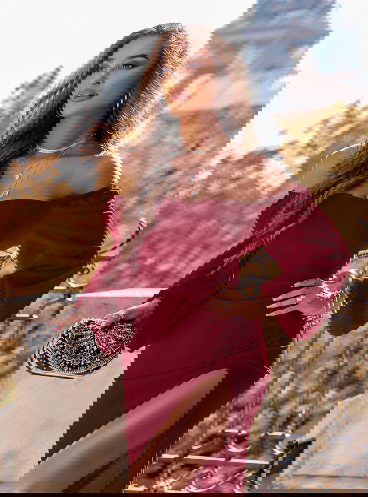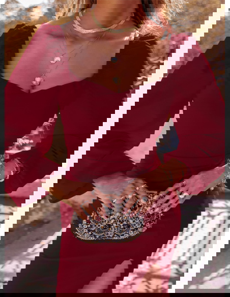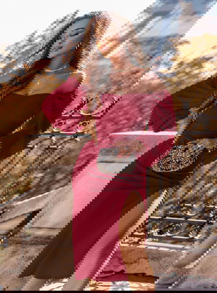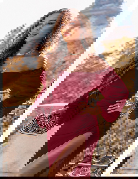 Bordowa sukienka z rozcięciem Darda