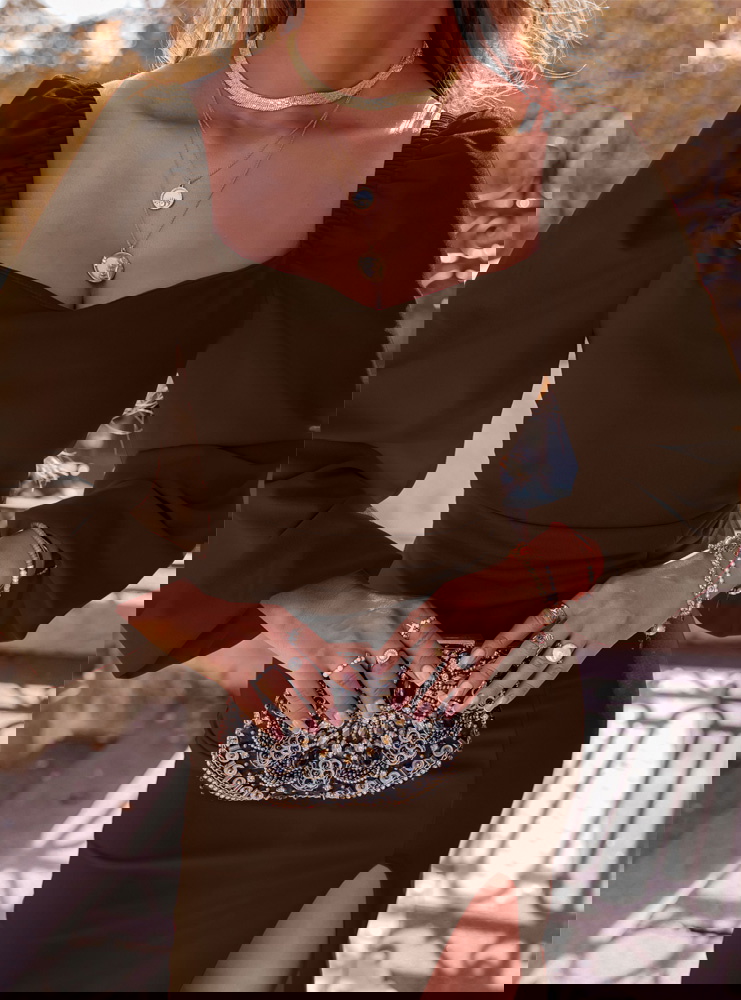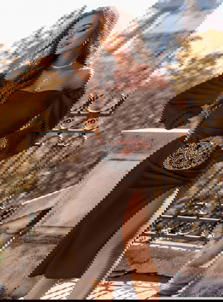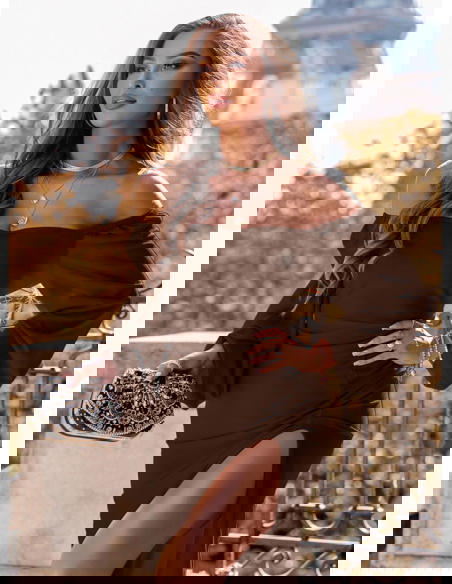 Czekoladowa sukienka z rozcięciem Darda to połączenie elegancji i kobiecości w najpiękniejszym wydaniu. Jej kolor jest niezwykle szlachetny, głęboki i ponadczasowy. To odcień, który dodaje szyku i idealnie komponuje się z biżuterią czy dodatkami w różnych barwach. Sukienka zachwyca swoją linią – podkreśla sylwetkę i sprawia, że każda kobieta czuje się w niej wyjątkowo. Rozcięcie na nodze dodaje całości lekkości i subtelnej zmysłowości. To detal, który sprawia, że stylizacja staje się bardziej odważna, ale nadal pełna klasy. Sukienka pięknie łączy prostotę z nowoczesnym akcentem, dzięki czemu nie potrzebuje wielu dodatków, aby robić wrażenie. To kreacja, w której łatwo poczuć się pewnie i kobieco. Idealna dla tych, które lubią elegancki, a jednocześnie modny wygląd. To sukienka, która nie tylko zdobi, ale też podkreśla osobowość swojej właścicielki.