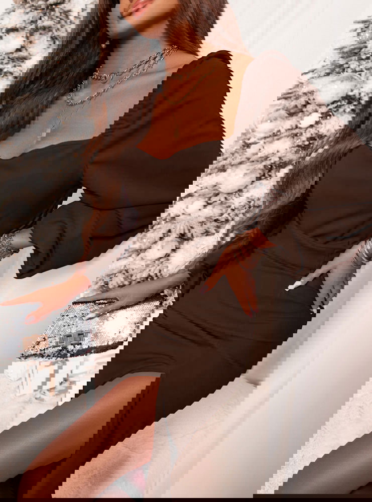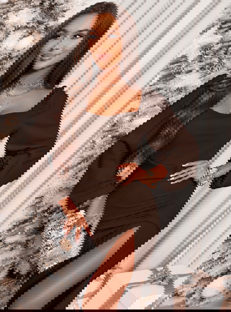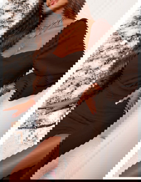Czekoladowa sukienka z rozcięciem Amrynna to synonim elegancji i kobiecego wdzięku w najpiękniejszym wydaniu. Głęboki, czekoladowy kolor prezentuje się niezwykle stylowo i podkreśla wyjątkowość tej kreacji. To odcień, który dodaje klasy i sprawia, że każda stylizacja wygląda szykownie. Sukienka została zaprojektowana tak, aby subtelnie eksponować kobiecą sylwetkę. Rozcięcie na nodze nadaje jej lekkości i odrobiny zmysłowości. To detal, który sprawia, że model staje się wyjątkowy i intrygujący. Elegancka linia sukienki doskonale wpisuje się w klimat wyjątkowych okazji. To propozycja, która łączy prostotę z wyrafinowaniem. W tej sukience każda kobieta poczuje się pewnie, szykownie i wyjątkowo. To kreacja, która nie tylko podkreśla atuty, ale też dodaje niepowtarzalnego uroku.