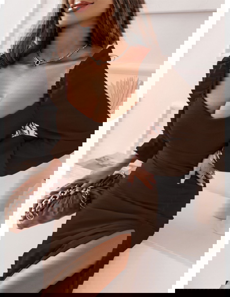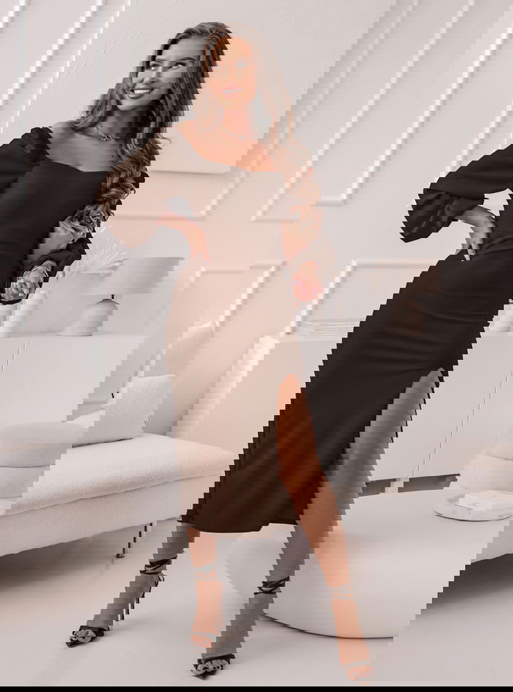 Czekoladowa sukienka z rozcięciem Dalena to ponadczasowy model, który łączy prostotę i elegancję z nutą nowoczesności. Jej klasyczna forma sprawia, że będzie zawsze dobrym wyborem. Rozcięcie subtelnie eksponuje nogę, dodając całości kobiecego charakteru. Bufiaste rękawy wprowadzają modny, lekko romantyczny akcent. To sukienka, w której poczujesz się wyjątkowo i szykownie. Idealnie sprawdzi się na wiele okazji – od uroczystych spotkań po wieczorne wyjścia. To kreacja, która nigdy nie wyjdzie z mody i zawsze podkreśli Twój styl.