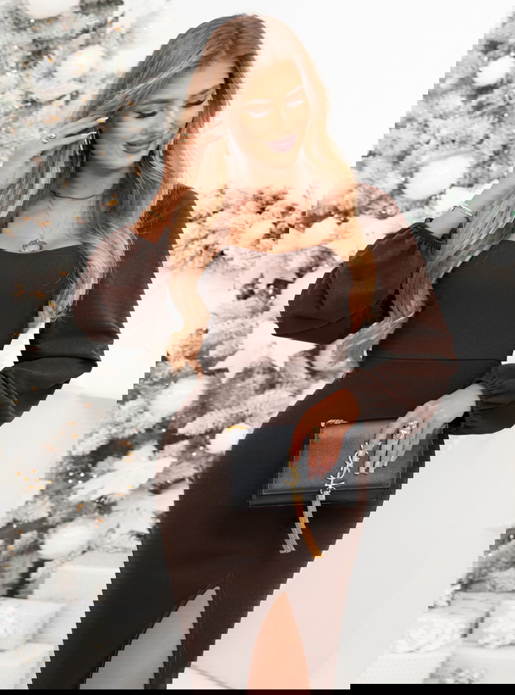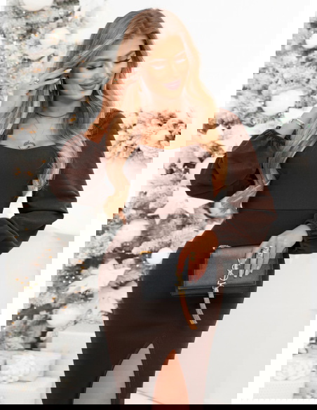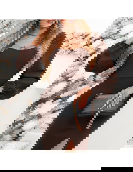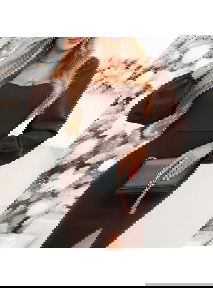 Czekoladowa sukienka z rozcięciem Carrmen to propozycja, która łączy ponadczasową klasykę z nutą nowoczesnej elegancji. Jej długość midi sprawia, że prezentuje się wyjątkowo szykownie i kobieco. Dekolt w prostokątnym kształcie pięknie eksponuje szyję i ramiona, dodając całości delikatności. Długie, bufiaste rękawy nadają sukience subtelnego wdzięku, a jednocześnie przyciągają uwagę swoją formą. Rozcięcie na nodze przełamuje klasyczną linię i dodaje odrobinę zmysłowości. Ciepły, czekoladowy odcień sprawia, że stylizacja wygląda niezwykle elegancko i wpisuje się w najmodniejsze trendy sezonu. To sukienka, która doskonale łączy wygodę z eleganckim charakterem. Można ją nosić na wiele okazji, dobierając odpowiednie dodatki. Klasyczne szpilki, biżuteria czy mała torebka stworzą idealne uzupełnienie tego looku. To model, w którym każda kobieta będzie czuła się wyjątkowo i stylowo.