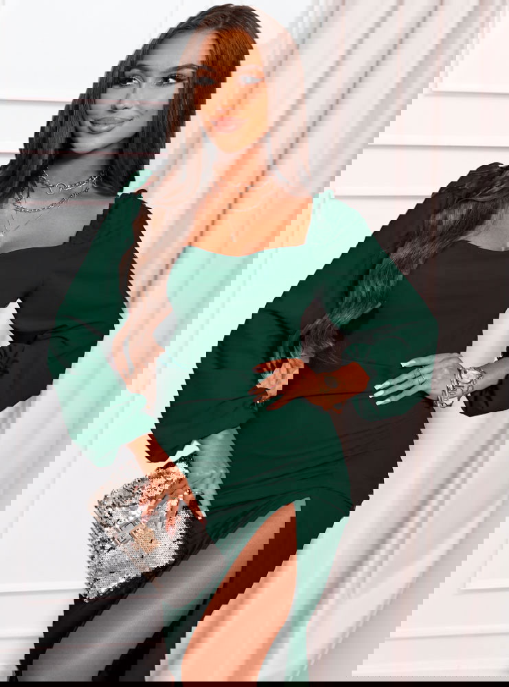 Sukienka z rozcięciem Pamalyn - butelkowa zieleń to propozycja, która łączy kobiecy wdzięk z ponadczasową elegancją. Jej krój został zaprojektowany tak, by podkreślać sylwetkę, a jednocześnie zachować wygodę i swobodę ruchu. Kolor butelkowej zieleni przyciąga uwagę i podkreśla wyjątkowość każdej stylizacji. Rozcięcie na nodze dodaje całości lekkości i zmysłowości. Bufiaste rękawy i prostokątny dekolt wprowadzają eleganckie, romantyczne akcenty. To sukienka, która idealnie sprawdzi się na wyjątkowe okazje, kiedy chcesz wyglądać olśniewająco. Z pewnością stanie się Twoim ulubionym wyborem na ważne wydarzenia.