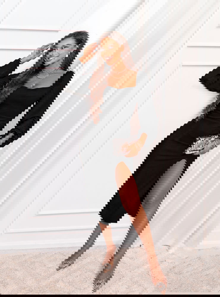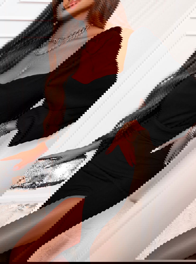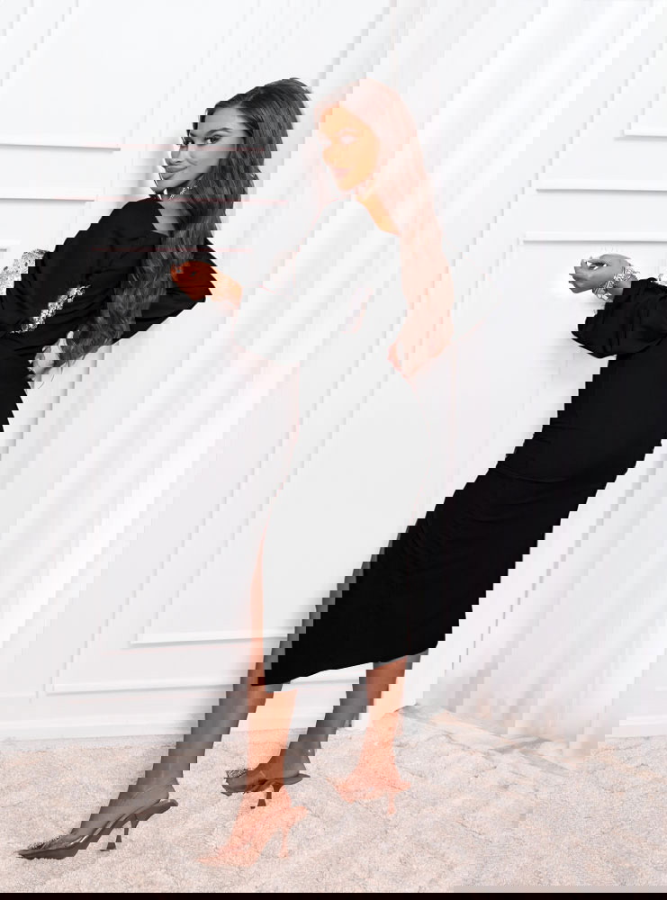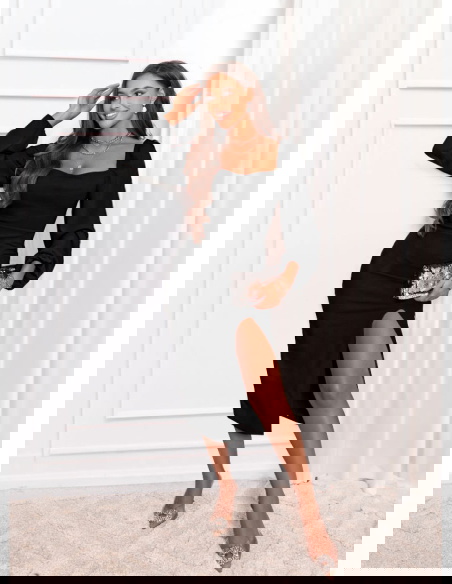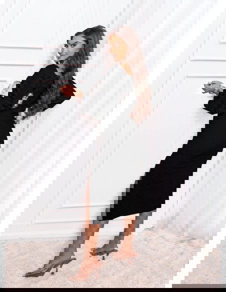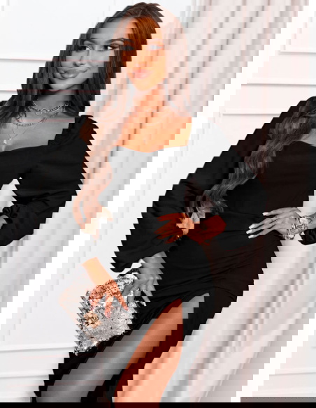 Czarna sukienka z rozcięciem Pamalyn to synonim klasy i ponadczasowej elegancji. Jej prosty, a jednocześnie niezwykle kobiecy krój przyciąga spojrzenia. Czerń to kolor, który nigdy nie wychodzi z mody i zawsze dodaje stylizacji wyjątkowego charakteru. Sukienka o długości midi pięknie podkreśla sylwetkę i optycznie wysmukla figurę. Dekolt w prostokątnym kształcie subtelnie eksponuje linię szyi i ramion. Bufiaste rękawy wprowadzają nutę lekkości i romantyzmu, a jednocześnie dodają całości eleganckiego wyrazu. Rozcięcie na nodze nadaje sukience nowoczesnego i zmysłowego akcentu. To połączenie prostoty i detali, które sprawiają, że całość prezentuje się niezwykle szykownie. Sukienka idealnie wpisuje się w klimat wieczorowych spotkań i wyjątkowych uroczystości. To kreacja, w której każda kobieta poczuje się pięknie, pewnie i niezwykle stylowo.