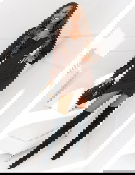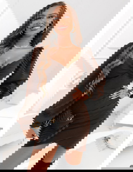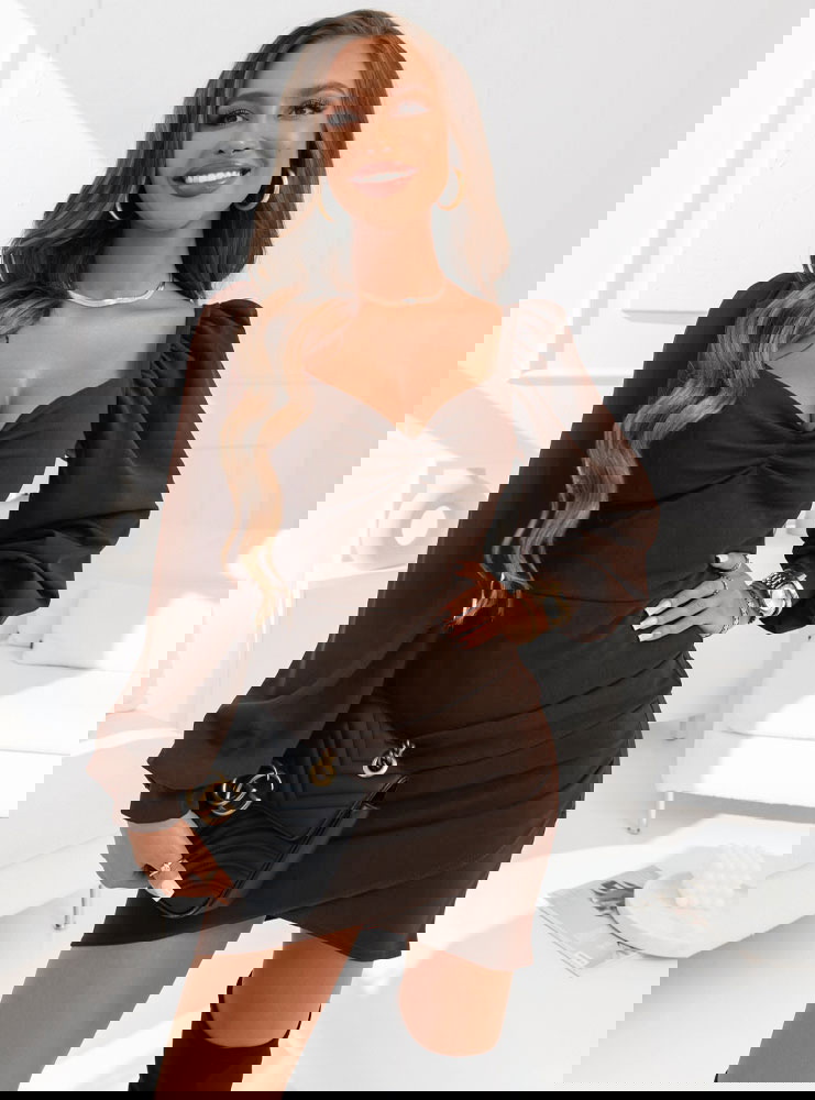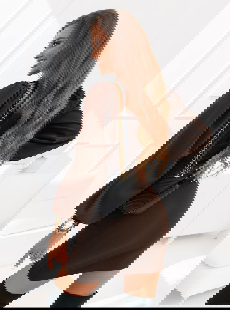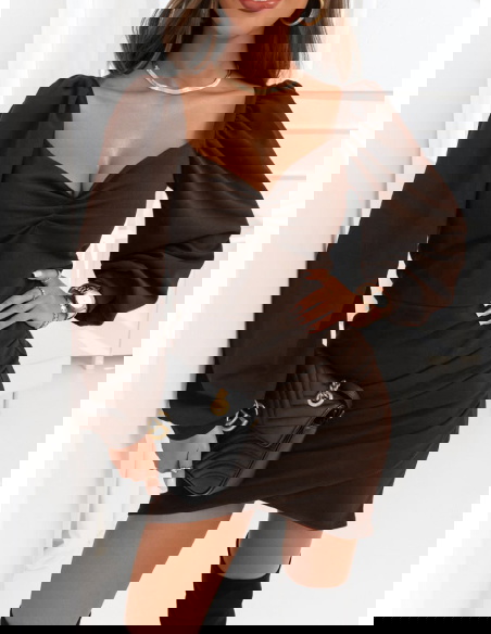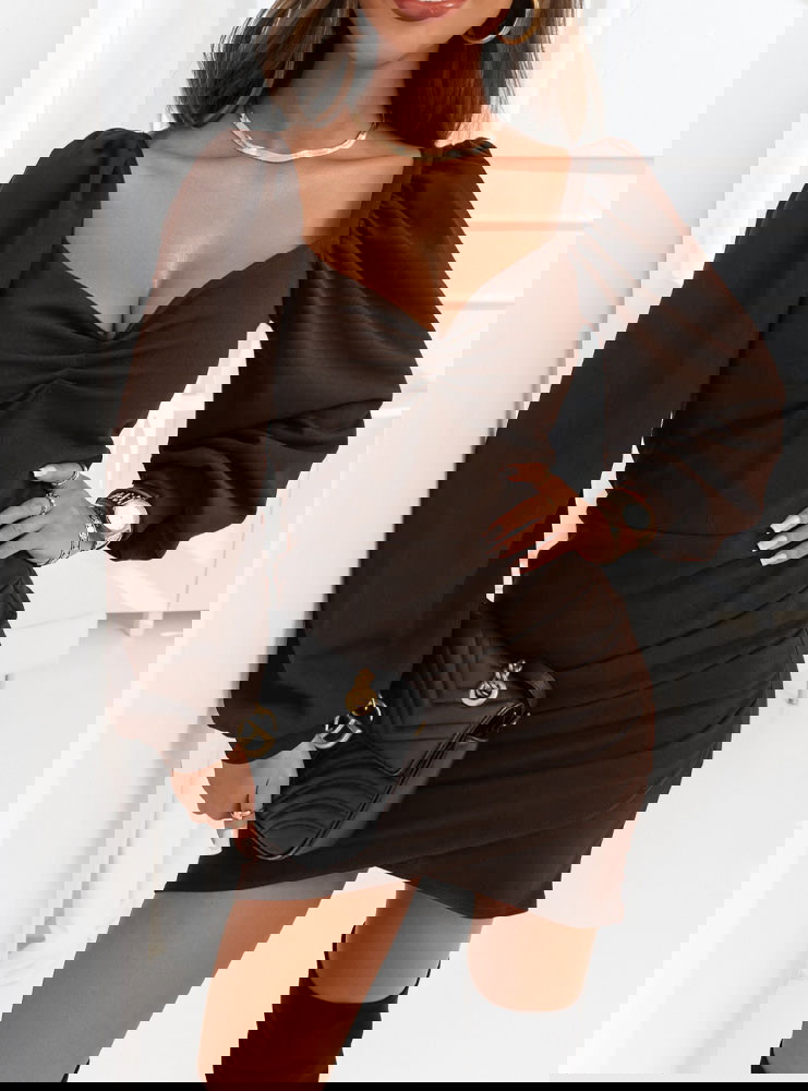 Czekoladowa sukienka z dekoltem w serce i marszczeniem z boku Sylwie to kwintesencja kobiecości. Jej dopasowany krój mini sprawia, że sylwetka wygląda smuklej i bardziej proporcjonalnie. Dekolt w serce pięknie podkreśla górne partie ciała. Marszczenie z boku dodaje lekkości i sprytnego modelowania. Bufiaste rękawy wprowadzają subtelną elegancję. To kreacja, która sprawdzi się zarówno na wyjątkowe okazje, jak i mniej formalne wyjścia. Z tą sukienką każda stylizacja nabierze wyjątkowego charakteru.