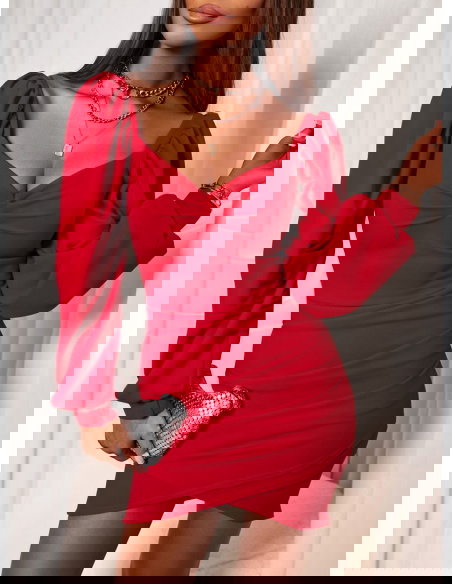 Malinowa sukienka z dekoltem w serce i marszczeniem z boku Shirlee