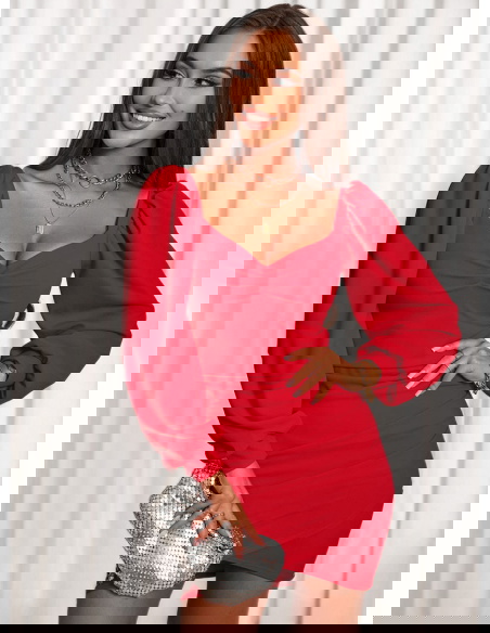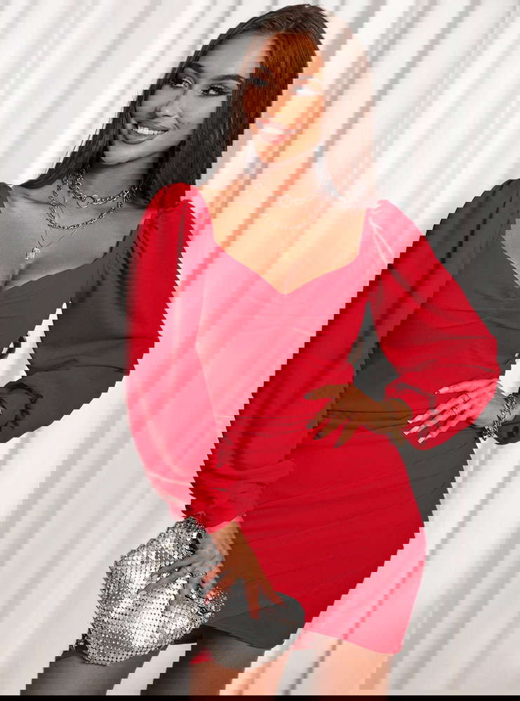 Malinowa sukienka z dekoltem w serce i marszczeniem z boku Shirlee to kwintesencja kobiecości i pewności siebie. Intensywny, malinowy odcień przyciąga wzrok i dodaje energii każdej stylizacji. Dekolt w serce subtelnie podkreśla linię biustu, nadając kreacji romantycznego uroku. Marszczenia z boku modelują sylwetkę i wprowadzają lekki efekt wysmuklenia. Krótki krój odsłania nogi i sprawia, że całość wygląda wyjątkowo zmysłowo. Bufiaste rękawy dodają lekkości i eleganckiego wykończenia. To propozycja dla kobiet, które lubią wyróżniać się w szykowny, a zarazem nowoczesny sposób. Malinowy kolor pięknie komponuje się z biżuterią i dodatkami w złocie lub srebrze. To sukienka, w której każda chwila nabiera wyjątkowego charakteru. Założysz ją, gdy chcesz błyszczeć i czuć się naprawdę wyjątkowo.