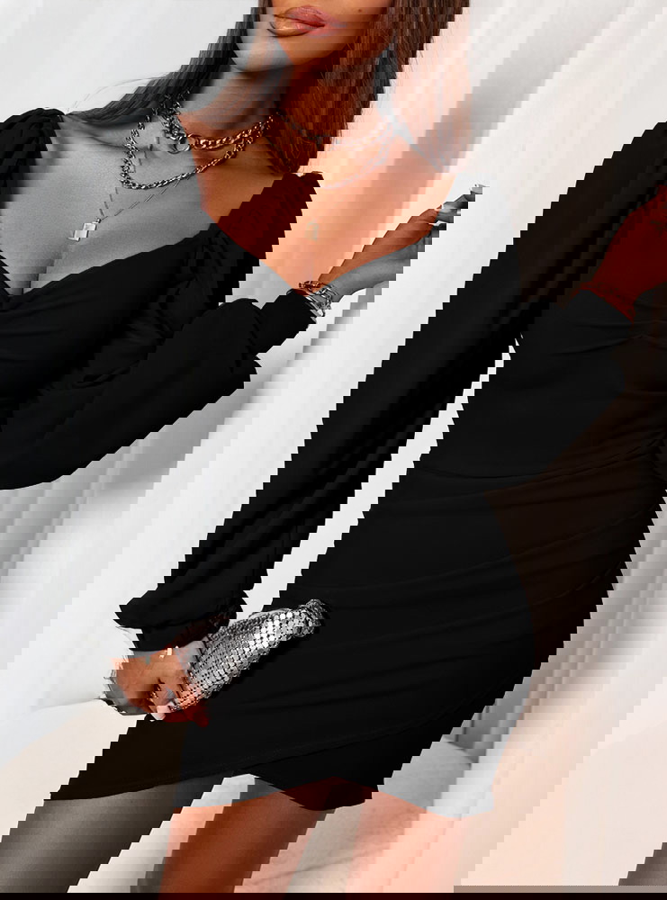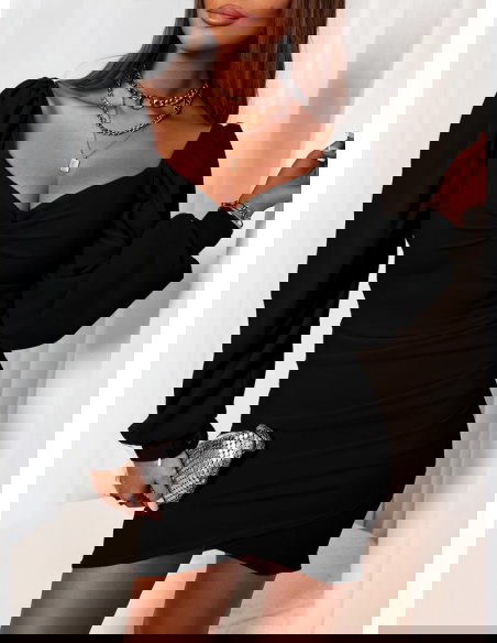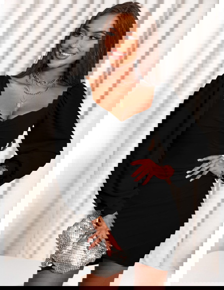 Czarna sukienka z dekoltem w serce i marszczeniem z boku Shirlee