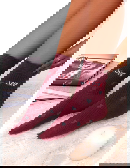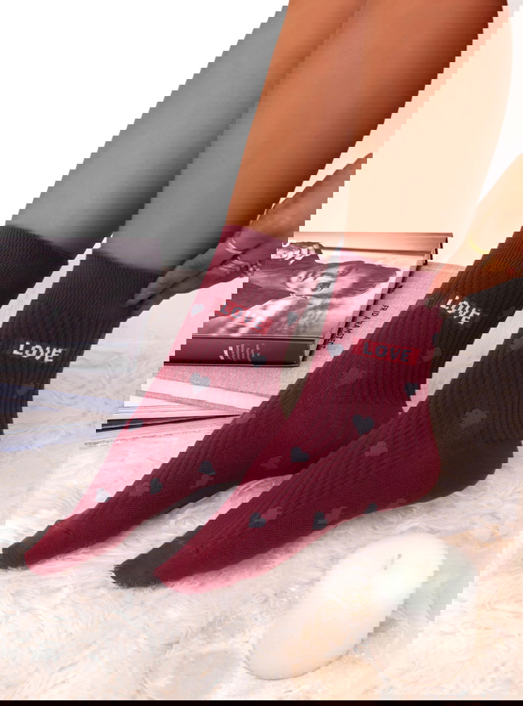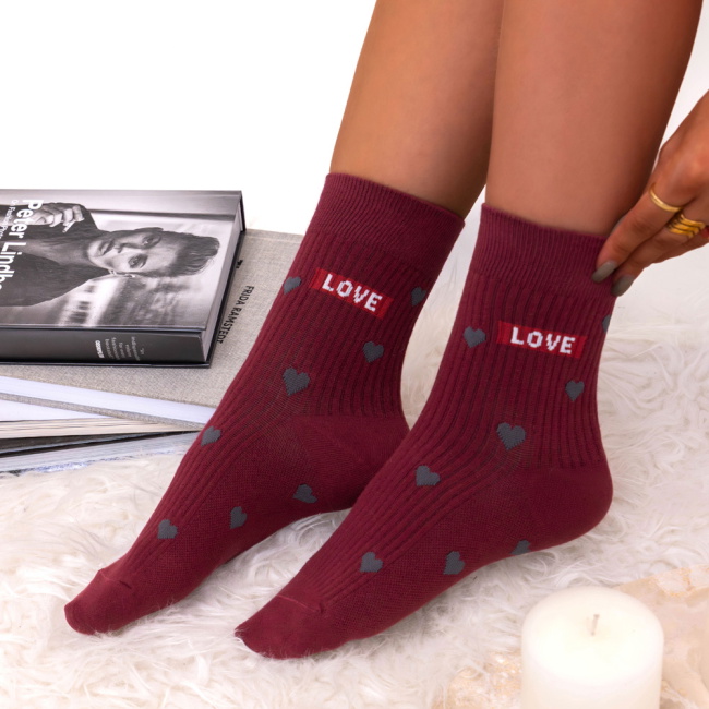 Bordowe skarpetki z ozdobnym motywem Celestiel to energetyczny i pełen charakteru akcent, który w prosty sposób odmieni każdą stylizację. Ich głęboki kolor przyciąga wzrok i nadaje wyjątkowego uroku. Ozdobny motyw w postaci serduszek oraz napisu „LOVE” sprawia, że skarpetki prezentują się wyjątkowo kobieco i subtelnie romantycznie. To propozycja dla kobiet, które lubią dodawać swoim stylizacjom odrobinę zabawy i lekkości. Bordowy odcień pięknie kontrastuje zarówno z jasnymi, jak i ciemnymi ubraniami. To detal, który pozwala wyróżnić się w tłumie i wyrazić swój styl. Dzięki elastycznemu ściągaczowi dobrze trzymają się na nodze i są wygodne w noszeniu. Skarpetki w tym kolorze wprowadzają do stylizacji nutkę świeżości i nowoczesności. To dodatek, który sprawdzi się zarówno w codziennych zestawach, jak i w tych bardziej swobodnych. Z nimi każdy outfit nabierze unikalnego charakteru.
