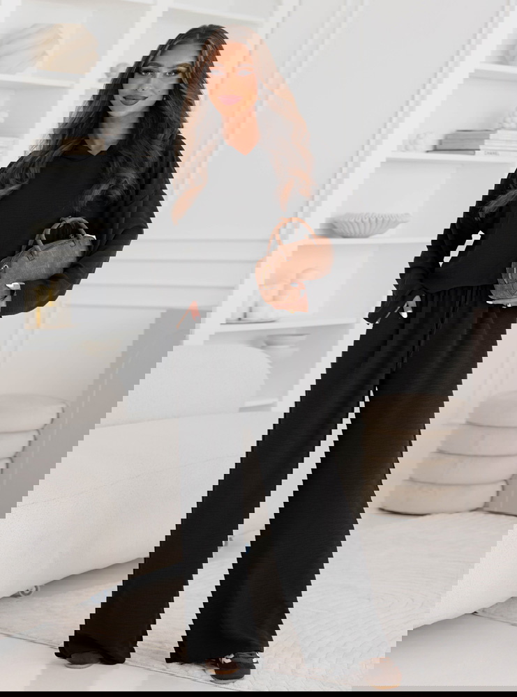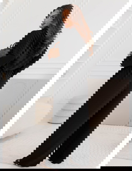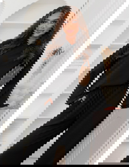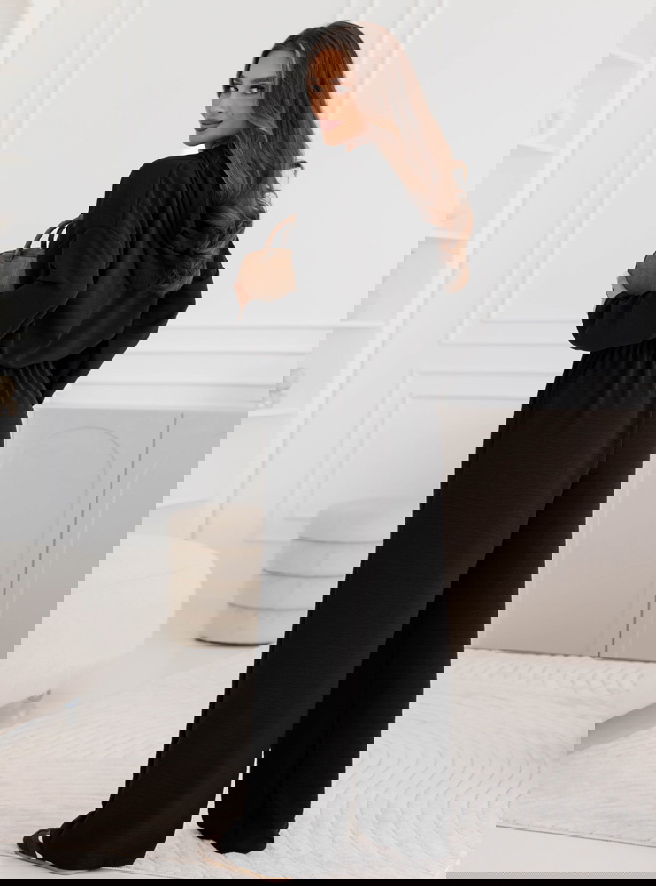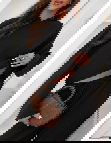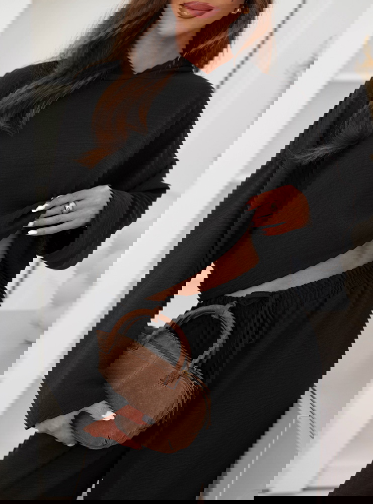 Czarny komplet bluzka z kapturem i spodnie Elivinaa to absolutny klasyk, który nigdy nie wychodzi z mody. Jego ponadczasowy odcień sprawia, że zawsze prezentuje się elegancko i stylowo. To zestaw, w którym poczujesz się swobodnie, a jednocześnie bardzo kobieco. Bluzka z kapturem dodaje całości lekkiego, sportowego charakteru. Luźne spodnie z szerokimi nogawkami gwarantują wygodę i pełną swobodę ruchów. Komplet zachwyca prostotą, która jest jednocześnie jego największą siłą. To propozycja, która doskonale sprawdzi się w wielu różnych sytuacjach. Dzięki czerni stylizacja nabiera uniwersalności i pasuje do każdego dodatku. Możesz go nosić zarówno na co dzień, jak i w bardziej wyjątkowych chwilach. To zestaw, który łączy minimalizm z nowoczesnym szykiem.