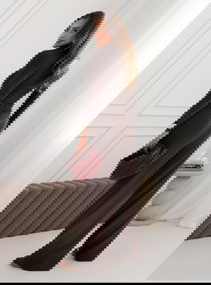 Czekoladowy prążkowany komplet bluzka + spodnie Shaina to zestaw, który łączy w sobie nowoczesny styl i ponadczasową elegancję. Od pierwszego spojrzenia przyciąga uwagę głębokim kolorem, który świetnie wpisuje się w jesienno-zimowe stylizacje. To idealny wybór dla kobiet, które lubią wyglądać modnie, a jednocześnie cenią wygodę. Komplet pozwala na stworzenie spójnej stylizacji bez potrzeby długiego zastanawiania się nad doborem poszczególnych elementów. Dopasowana bluzka z długim rękawem pięknie podkreśla sylwetkę i dodaje całości kobiecego charakteru. Szerokie spodnie nadają lekkości, a jednocześnie wprowadzają nutę swobody i komfortu. Dzięki prążkowanemu wykończeniu całość prezentuje się jeszcze ciekawiej i bardziej stylowo. Minimalistyczna forma sprawia, że komplet ten daje szerokie możliwości stylizacyjne. To wybór, który sprawdzi się zarówno na co dzień, jak i w bardziej wyjątkowych chwilach. W tym komplecie każda kobieta poczuje się pewnie i stylowo, niezależnie od okazji.