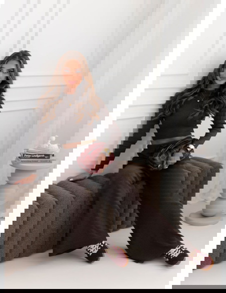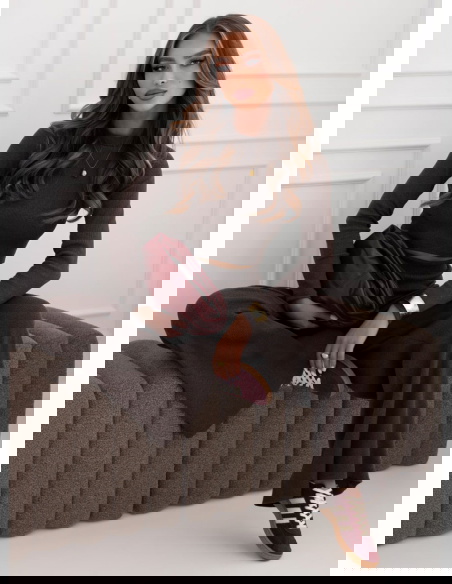 Czekoladowy prążkowany komplet bluzka + spodnie Shaina to propozycja, która łączy wygodę i modny design. Dzięki uniwersalnemu krojowi i klasycznemu kolorowi łatwo dopasujesz go do różnych okazji.