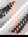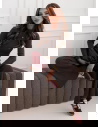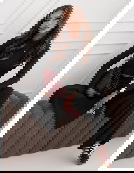 Czarny prążkowany komplet bluzka + spodnie Shaina to propozycja, która łączy w sobie elegancję, wygodę i nowoczesny charakter. Już na pierwszy rzut oka zachwyca ponadczasowym kolorem, który pasuje absolutnie do wszystkiego. Dopasowana bluzka podkreśla atuty sylwetki, a spodnie o szerszym kroju nadają całości lekkości i swobody. To zestaw, który nie wymaga wielu dodatków, aby prezentować się wyjątkowo. Jego prostota sprawia, że wygląda bardzo szykownie, a jednocześnie naturalnie. Komplet doskonale wpisuje się w aktualne trendy, które stawiają na praktyczne, a zarazem stylowe rozwiązania. To świetny wybór dla kobiet, które cenią sobie połączenie komfortu z modnym wyglądem. Dzięki swojemu krojowi pozwala stworzyć wiele różnych stylizacji – od codziennych po bardziej eleganckie. Minimalizm zestawu sprawia, że jest on uniwersalny i ponadczasowy. To propozycja, która na pewno zagości na dłużej w Twojej garderobie.
