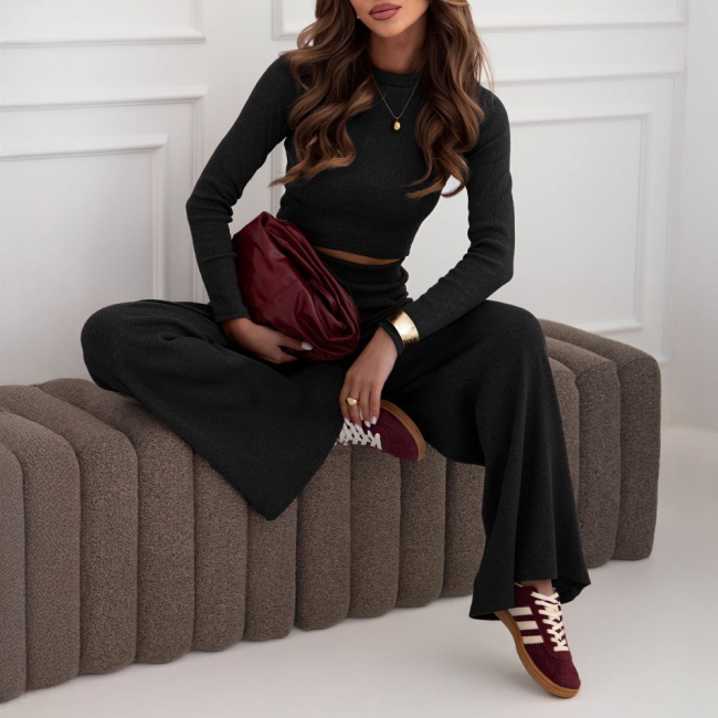 Czarny prążkowany komplet bluzka +...