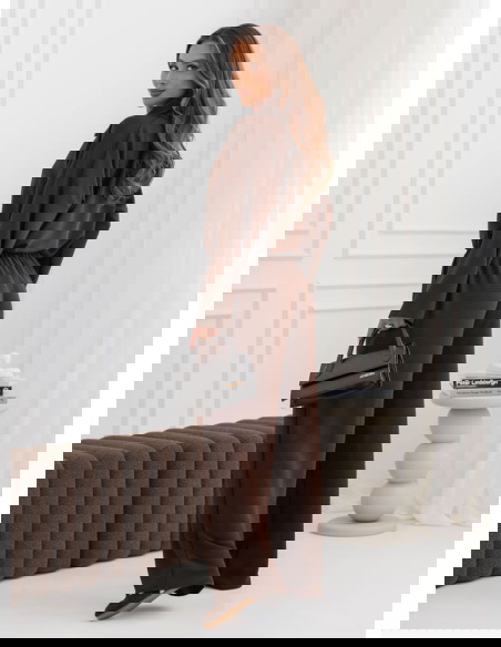 Czekoladowy komplet bluzka i szerokie spodnie Fennell
