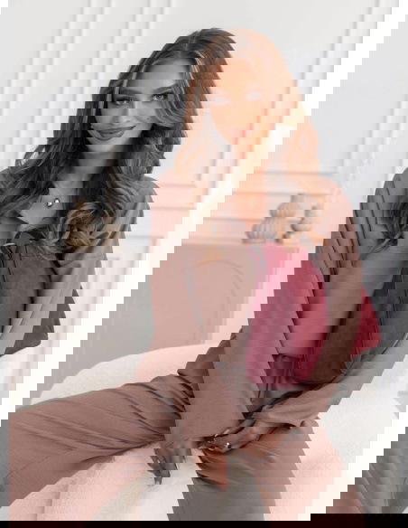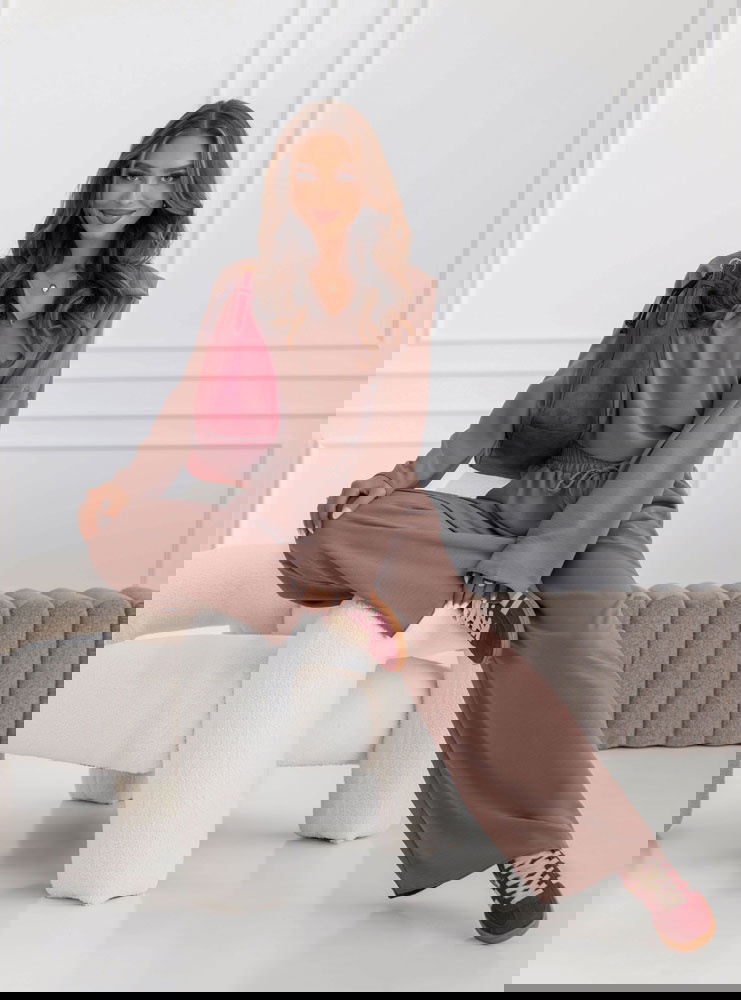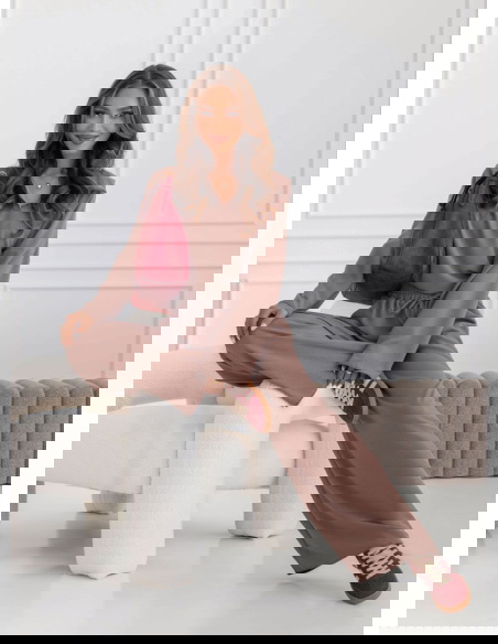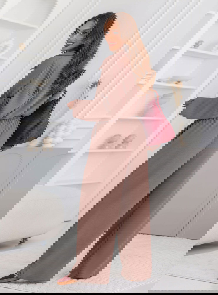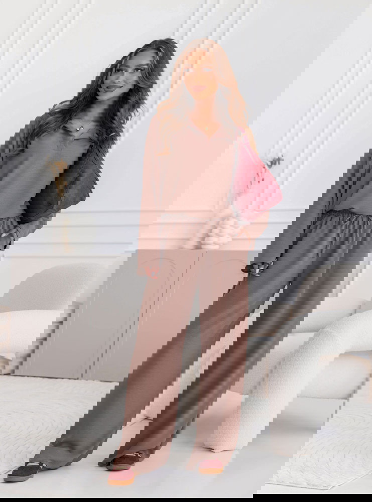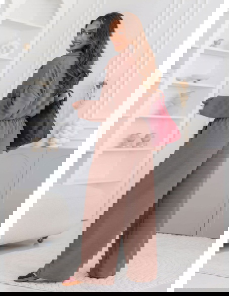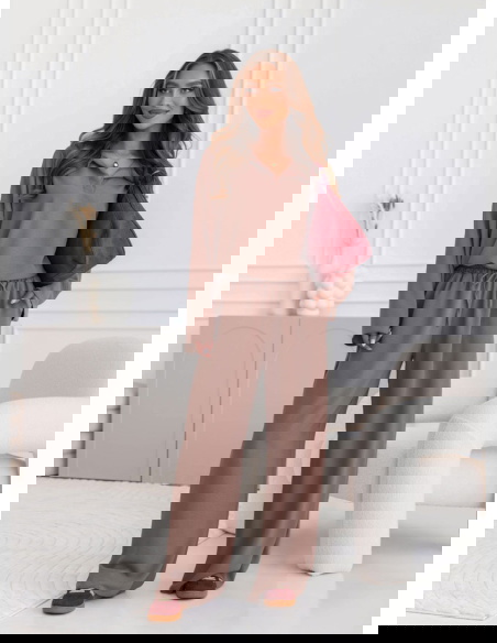 Komplet bluzka i szerokie spodnie Fennell - mocha mousse to połączenie elegancji, minimalizmu i wygody. Jego uniwersalny krój sprawia, że świetnie pasuje do różnych okazji.