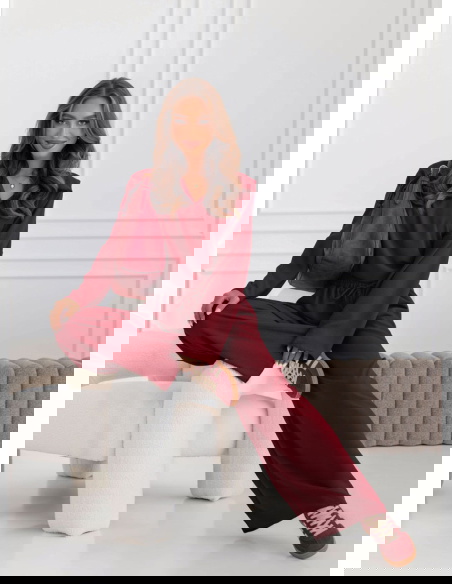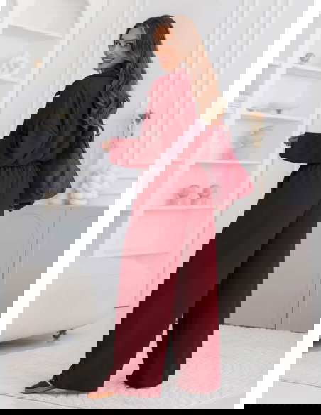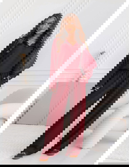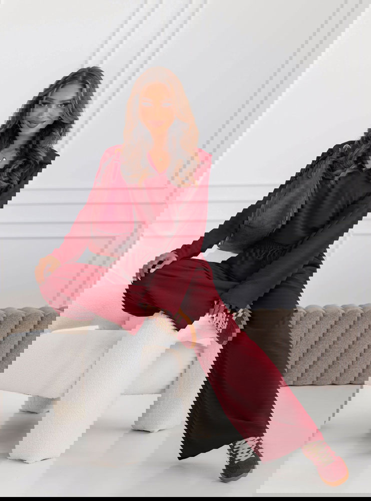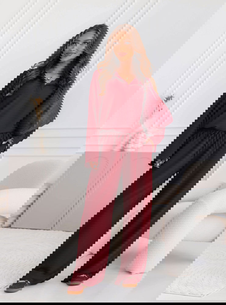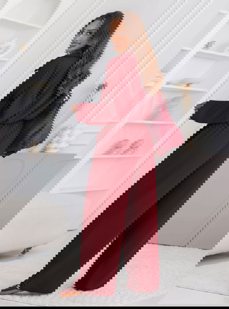 Bordowy komplet bluzka i szerokie spodnie Fennell