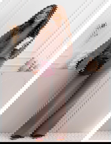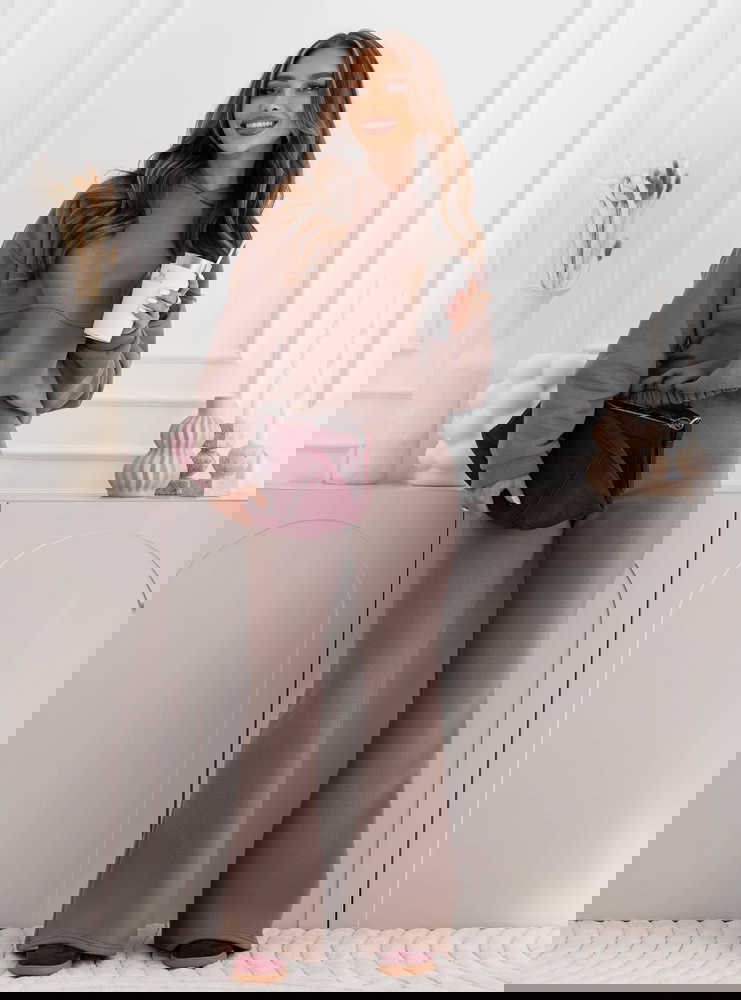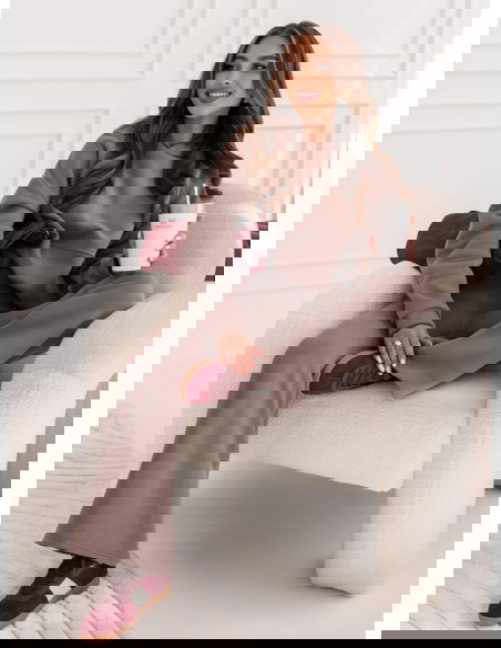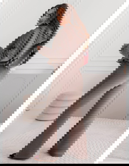 Komplet dresowy bluza i spodnie Celeciaa - mocha mousse to idealne połączenie wygody i stylu w nowoczesnym wydaniu. Już na pierwszy rzut oka widać, że to zestaw, który nie tylko zapewnia komfort, ale także pozwala wyglądać modnie i z klasą. Stonowany odcień mocha mousse wprowadza do stylizacji ciepło i subtelność, idealnie komponując się z jesiennym klimatem. Bluza z kapturem i luźnym krojem daje poczucie swobody, a jednocześnie prezentuje się stylowo. Spodnie o lekko rozszerzanych nogawkach dodają całości charakteru i przyciągają spojrzenia. To komplet, który świetnie sprawdzi się zarówno w domu, jak i poza nim. Dzięki niemu można czuć się dobrze niezależnie od okazji – od spotkań z przyjaciółmi po codzienne obowiązki. To propozycja, która łączy w sobie sportową wygodę i nutę elegancji. Wystarczy dodać ulubione dodatki, by stworzyć stylizację dopasowaną do własnego nastroju. Ten zestaw sprawi, że każda kobieta poczuje się pewnie i komfortowo.
