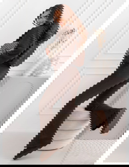 Czekoladowy komplet dresowy bluza i spodnie Celeciaa to propozycja, która idealnie wpisuje się w jesienny klimat. Ciepły odcień brązu otula swoją głębią, sprawiając, że każda stylizacja nabiera przytulnego charakteru. Bluza o luźnym fasonie daje poczucie swobody i lekkości, a spodnie o delikatnie rozszerzanych nogawkach wysmuklają sylwetkę. To komplet, który łączy codzienny luz ze stylowym wyglądem, tworząc spójną całość. Dzięki niemu poczujesz się komfortowo, ale jednocześnie zadbasz o modny akcent w swoim looku. Taki zestaw sprawdza się idealnie w okresie jesiennym, kiedy szukamy wygody, a jednocześnie chcemy wyglądać elegancko i schludnie. Czekoladowa kolorystyka podkreśla ciepło sezonu i pięknie komponuje się z dodatkami w odcieniach beżu, złota czy kremowej bieli. To wybór dla kobiet, które lubią, gdy moda spotyka się z wygodą. Każdy element został zaprojektowany tak, by podkreślić atuty sylwetki, a jednocześnie nie przytłaczać. Ten komplet z pewnością stanie się Twoim ulubionym jesiennym zestawem na wiele różnych okazji.