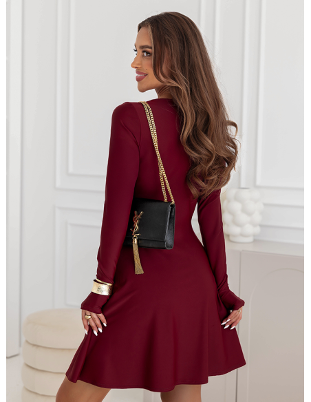 Bordowa sukienka mini z długimi rękawami Eyler sprawdzi się idealnie na eleganckie spotkania, kolacje czy uroczystości rodzinne. Świetnie wygląda również w stylizacjach do pracy, jeśli zestawisz ją z płaszczem i kozakami.