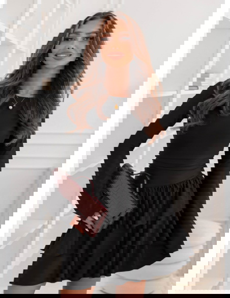 Czarny kombinezon jak sukienka z marszczeniami po bokach Anngeles