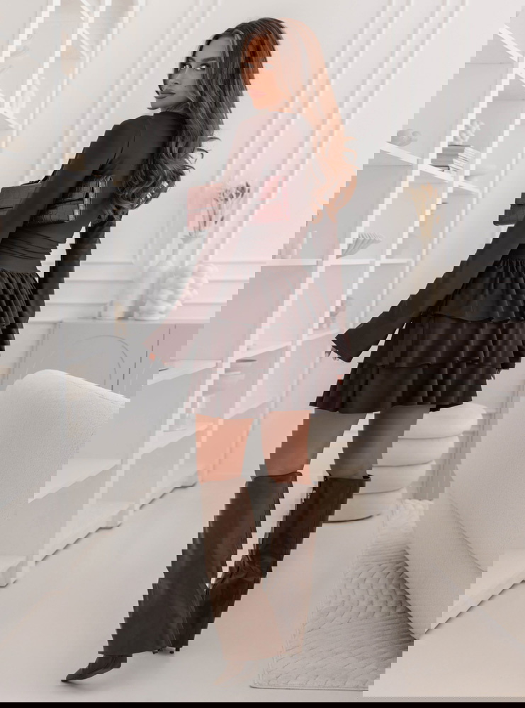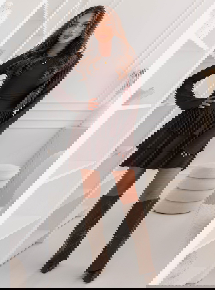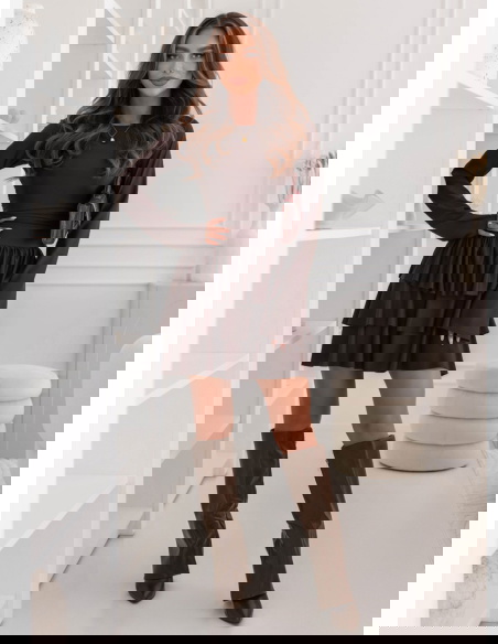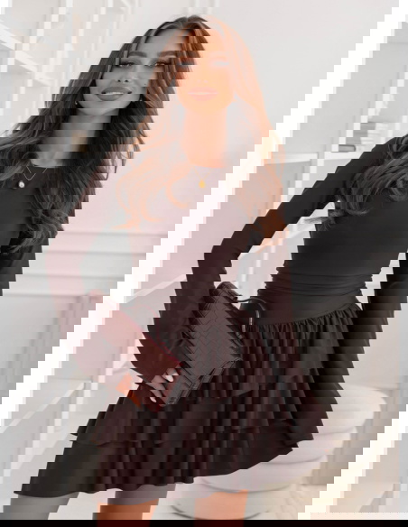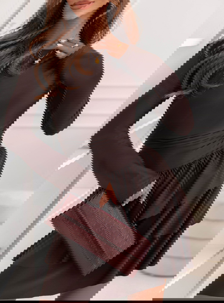 Czekoladowy kombinezon jak sukienka z marszczeniami po bokach Anngeles to wyjątkowa propozycja dla kobiet, które lubią łączyć elegancję z wygodą. Na pierwszy rzut oka wygląda jak stylowa sukienka, a jednocześnie zapewnia komfort typowy dla kombinezonu. Jego głęboki, czekoladowy kolor dodaje całości klasy i ponadczasowego charakteru. Marszczenia po bokach pięknie podkreślają talię i nadają sylwetce kobiecych kształtów. Rozkloszowana, warstwowa dolna część nadaje lekkości i dziewczęcego uroku. Długie rękawy i dopasowana góra wprowadzają nutę elegancji, idealną na różne okazje. To strój, który sprawdzi się zarówno w codziennych, jak i bardziej wyjątkowych chwilach. Kombinezon prezentuje się niezwykle efektownie, a jednocześnie praktycznie. Jest propozycją dla kobiet, które chcą czuć się pięknie i swobodnie w każdej sytuacji. To ubranie, które z pewnością przyciągnie spojrzenia i podkreśli Twój indywidualny styl.