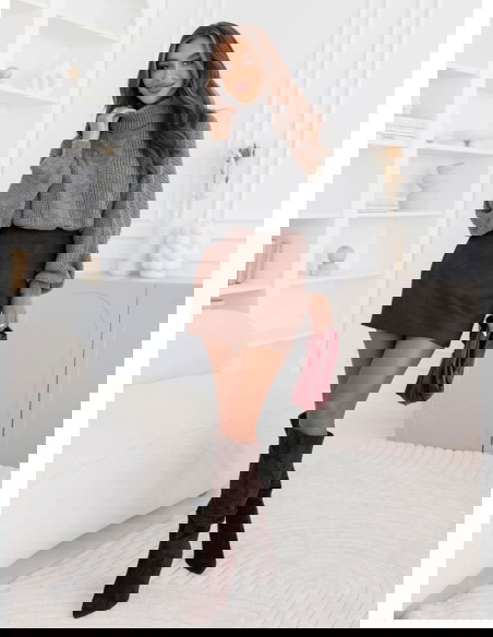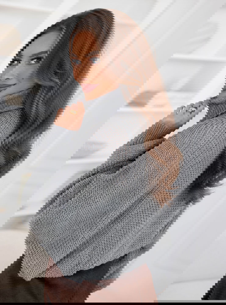 Szary sweter oversize z golfem Marym to połączenie wygody i stylu, które sprawdzi się w wielu codziennych sytuacjach. Jego luźniejszy krój nadaje mu nowoczesnego charakteru, a jednocześnie pozwala czuć się swobodnie i komfortowo. Szarość to kolor uniwersalny, który łatwo komponuje się z innymi barwami, tworząc eleganckie i modne zestawy. Golf dodaje całości przytulności oraz podkreśla jesienny klimat. Wzór w formie warkoczowych splotów w centralnej części swetra nadaje mu wyrazistości i stylowego akcentu. To propozycja, która świetnie sprawdzi się zarówno w casualowych, jak i bardziej dopracowanych stylizacjach. Dzięki oversize’owemu krojowi można nosić go na wiele sposobów – wpuszczony w spódnicę, luźno do spodni czy w warstwowych zestawach. To ubranie, które pozwala tworzyć modne i funkcjonalne outfity na co dzień. Każda kobieta poczuje się w nim modnie, a zarazem otulona jesienną przytulnością. To klasyka w nowoczesnym wydaniu, której nie może zabraknąć w szafie.