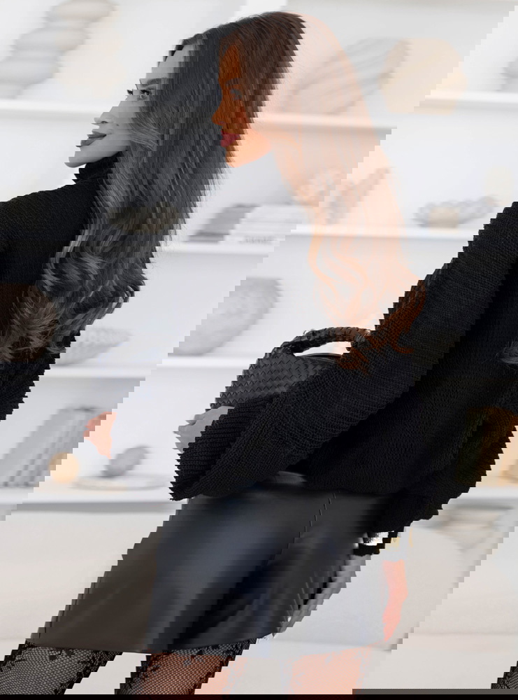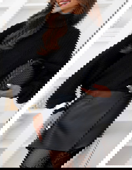Czarny sweter oversize z golfem Marym doskonale sprawdzi się w codziennych stylizacjach. Możesz nosić go do jeansów i botków, tworząc wygodny, miejski look.