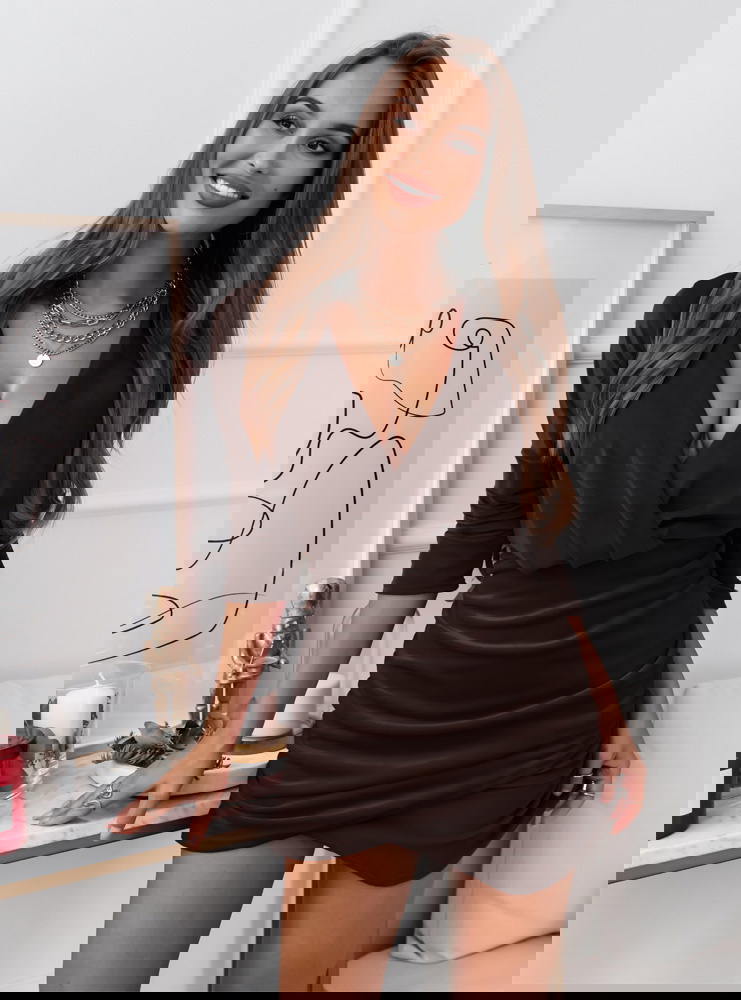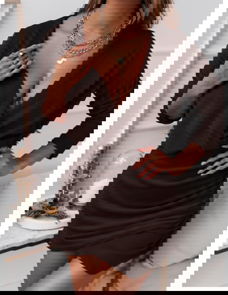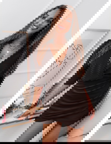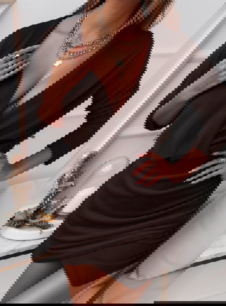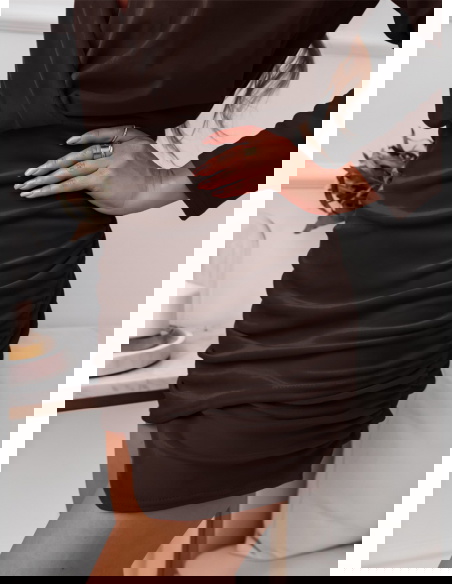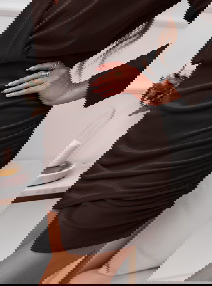 Czekoladowa welurowa sukienka z marszczeniami po bokach Santini to propozycja, która łączy w sobie elegancję i zmysłowy charakter. Jej głęboki odcień czekolady dodaje całości wyrafinowanego uroku i doskonale wpisuje się w jesienny klimat. Dopasowany krój pięknie podkreśla sylwetkę, a jednocześnie zachwyca subtelnymi detalami. Marszczenia po bokach optycznie wysmuklają figurę, nadając całości lekkości i wyjątkowego charakteru. Przekładany dekolt dodaje kobiecego wdzięku, subtelnie akcentując linię szyi i dekoltu. To kreacja, która sprawia, że każda kobieta poczuje się wyjątkowo i pewnie siebie. Krótka długość sukienki nadaje jej nowoczesnego wyrazu, idealnego na wiele okazji. To połączenie klasyki i modowego akcentu w jednym. Jesienią i zimą będzie idealnym wyborem na wieczorne spotkania czy wyjątkowe wyjścia. To sukienka, która podkreśla kobiecość w najlepszym wydaniu.