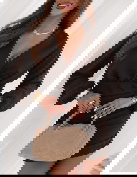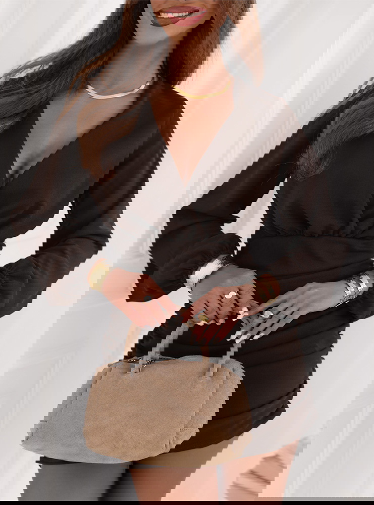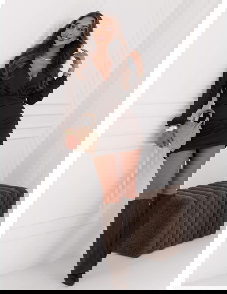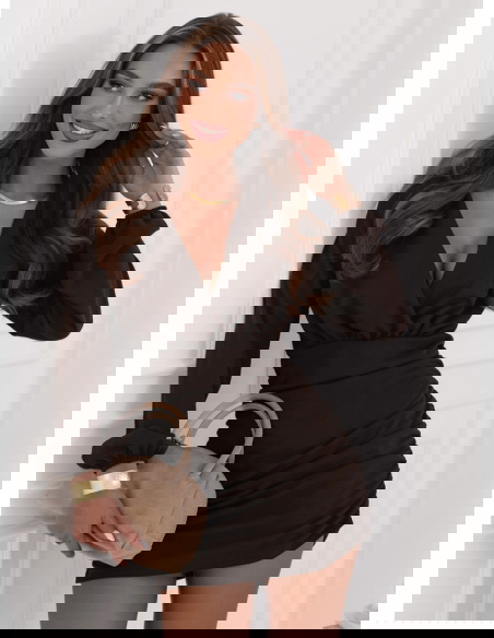 Czekoladowa sukienka mini z przekładanym dekoltem Meridith