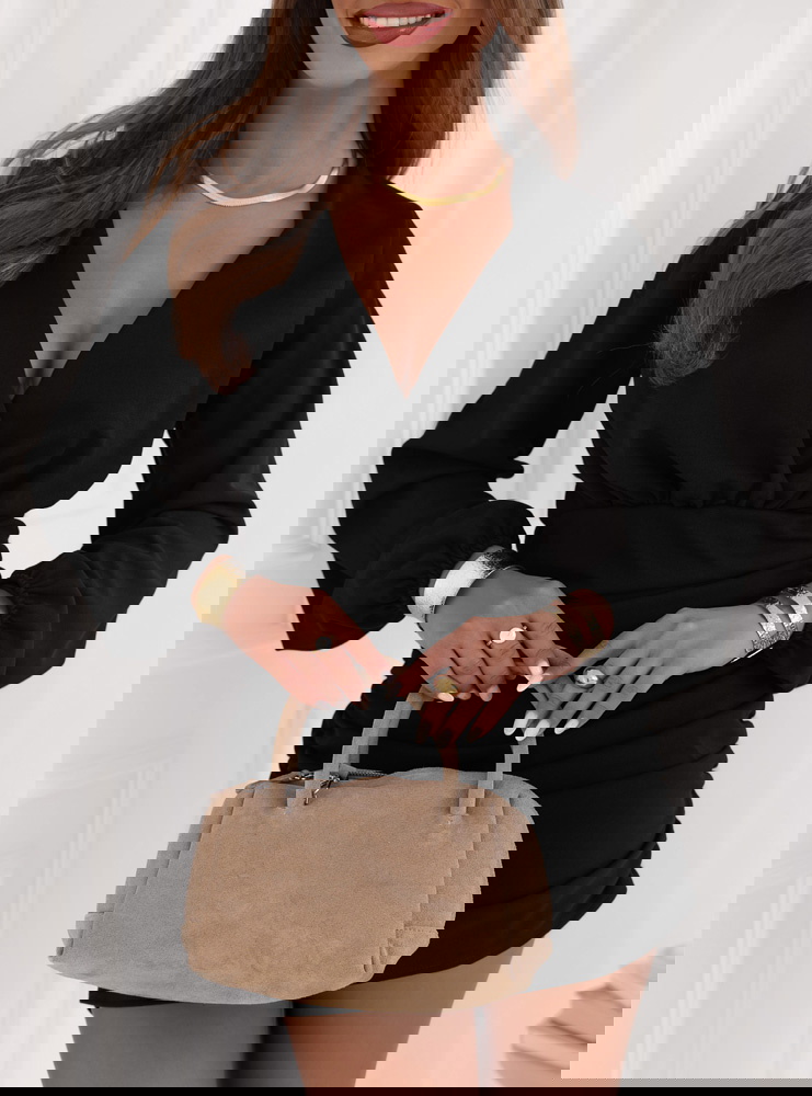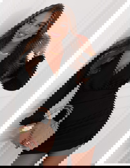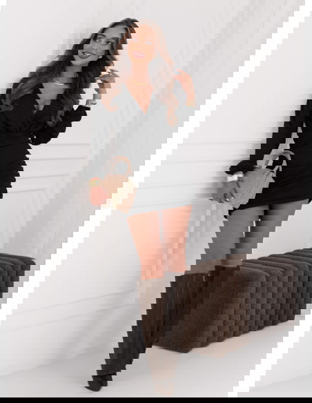 Czarna sukienka mini z przekładanym dekoltem Meridith