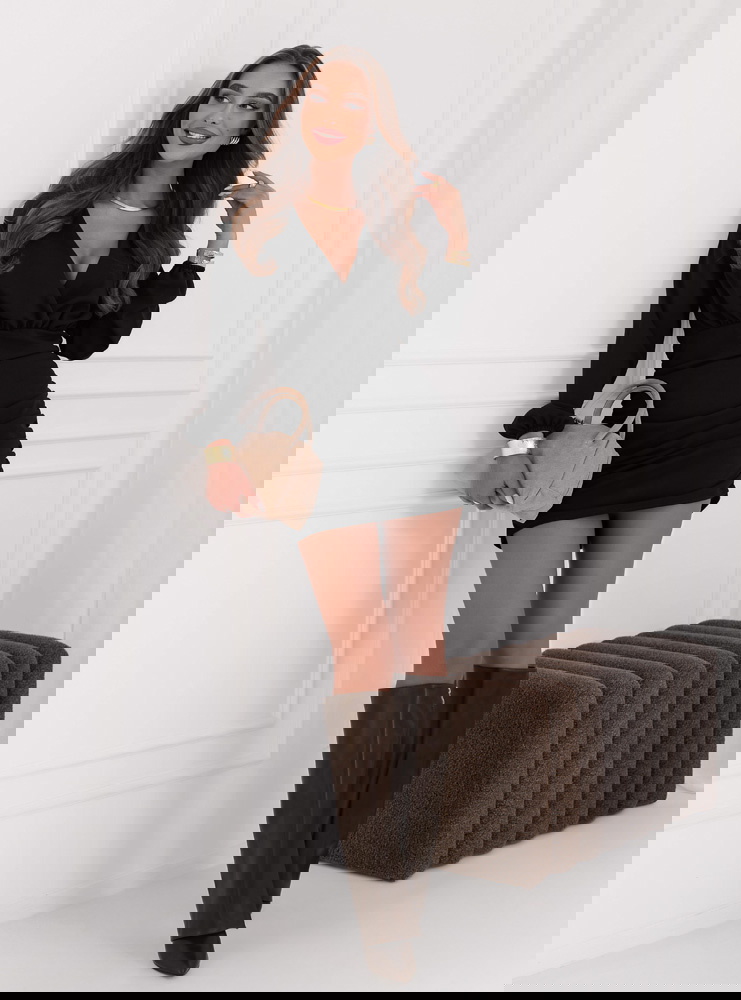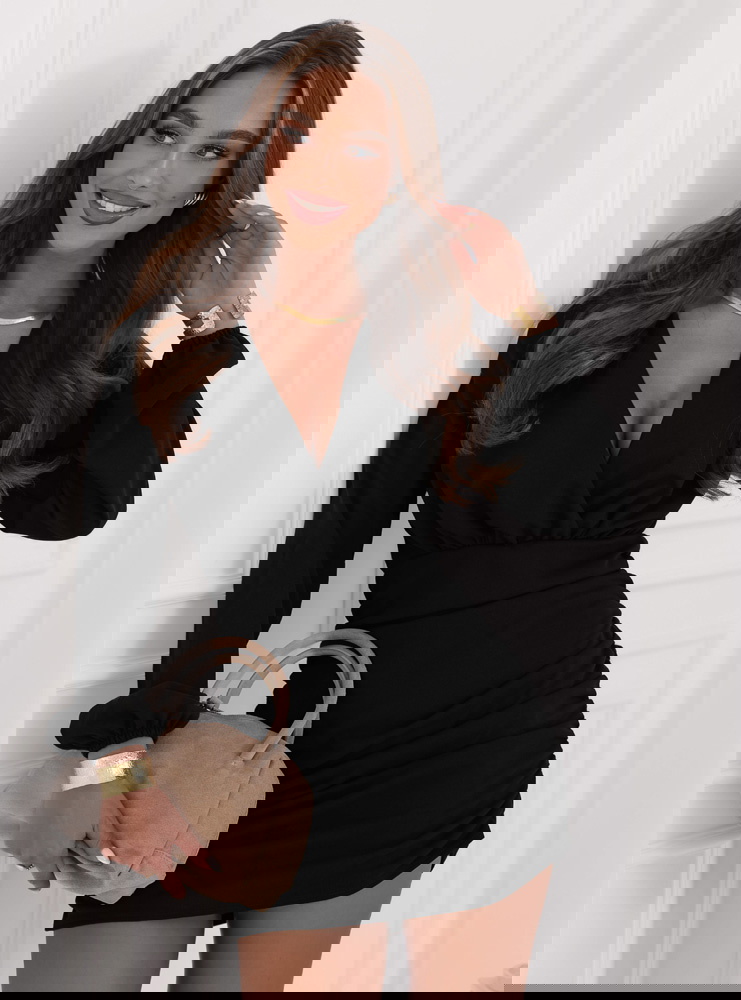 Czarna sukienka mini z przekładanym dekoltem Meridith to klasyka, która nigdy nie wychodzi z mody. Jej ponadczasowy charakter sprawia, że każda kobieta poczuje się w niej wyjątkowo. To model, który łączy elegancję z subtelną nutą zmysłowości. Głęboki, przekładany dekolt pięknie podkreśla sylwetkę i dodaje całości wyjątkowego uroku. Mini długość nadaje lekkości i młodzieńczego charakteru. To sukienka, która doskonale wpisuje się w jesienny klimat – idealna na wieczory, kiedy chcesz zabłysnąć. Jej prosty krój sprawia, że jest niezwykle uniwersalna, a jednocześnie niezwykle efektowna. Każdy szczegół został dopracowany tak, aby całość prezentowała się elegancko i kobieco. To propozycja dla kobiet, które cenią styl, pewność siebie i ponadczasową elegancję. Sukienka ta to nie tylko ubranie – to sposób na podkreślenie swojego charakteru i indywidualności.