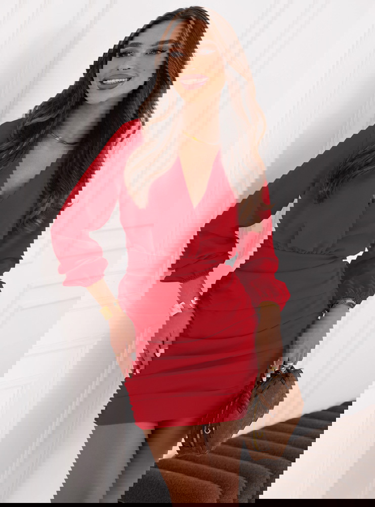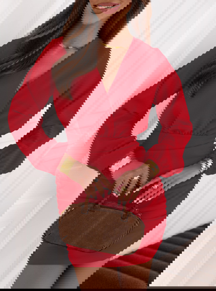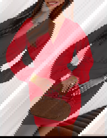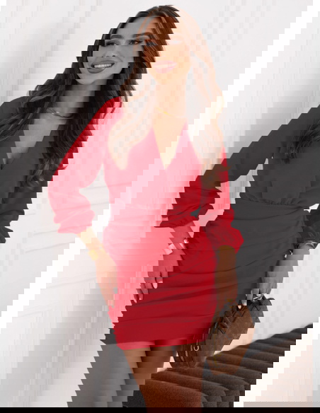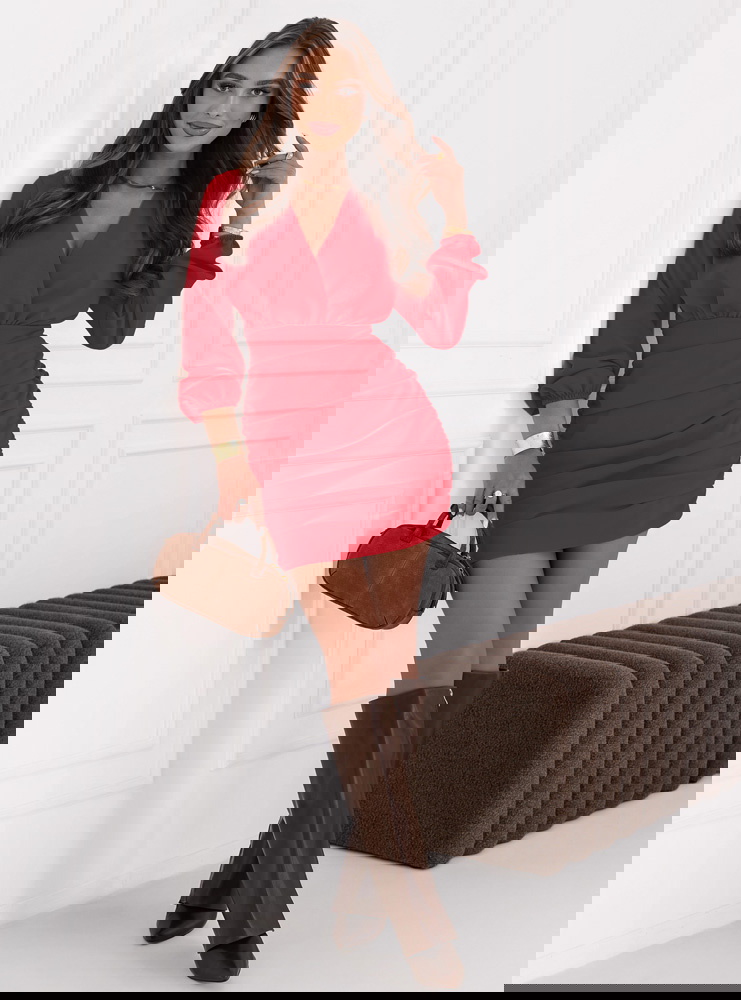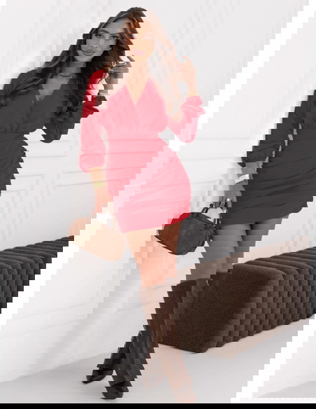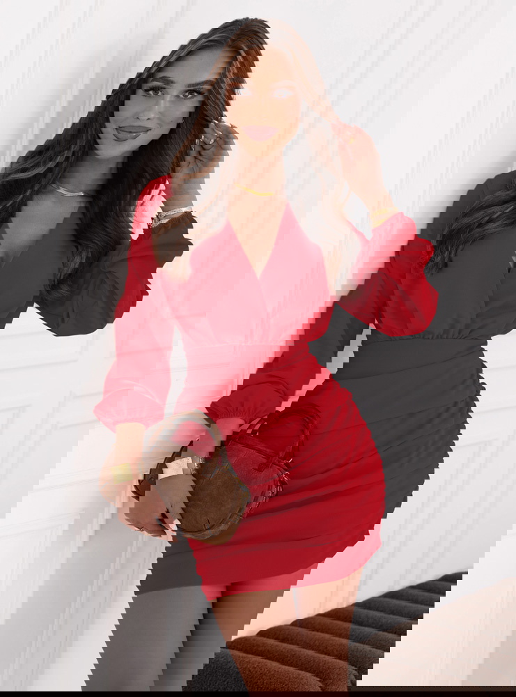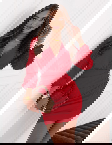 Malinowa sukienka mini z przekładanym dekoltem Meridith