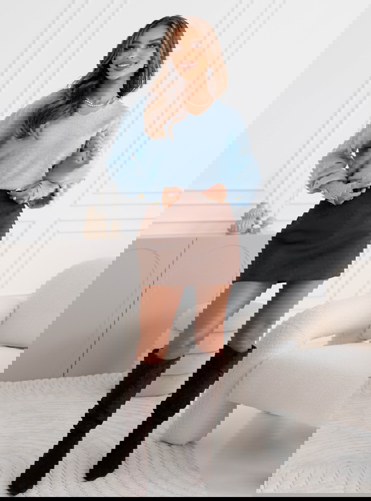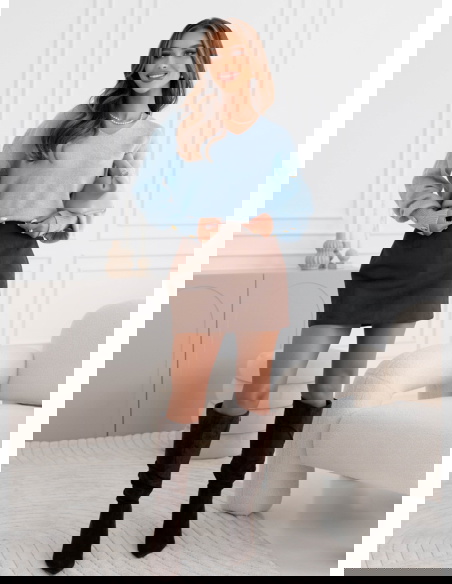Błękitny sweter z ozdobnymi guzikami na rękawach Stacyann to połączenie subtelnej elegancji i dziewczęcego uroku. Jego delikatny kolor wprowadza do stylizacji świeżość i lekkość, doskonale pasując do wielu okazji. To propozycja, która łączy w sobie klasyczny fason z modnymi detalami. Ozdobne guziki na rękawach przyciągają uwagę i dodają całości wyjątkowego charakteru. Sweter prezentuje się stylowo i nowocześnie, a jednocześnie pozostaje niezwykle uniwersalny. Dzięki swojemu krojowi zapewnia wygodę i swobodę noszenia. To element garderoby, który sprawdzi się zarówno w casualowych zestawach, jak i bardziej eleganckich stylizacjach. Jesienią i zimą błękitny kolor wprowadza powiew świeżości, przełamując stonowane barwy sezonu. To propozycja dla kobiet, które lubią łączyć prostotę z subtelnymi akcentami. Każda stylizacja z jego udziałem nabiera lekkości i kobiecego charakteru.