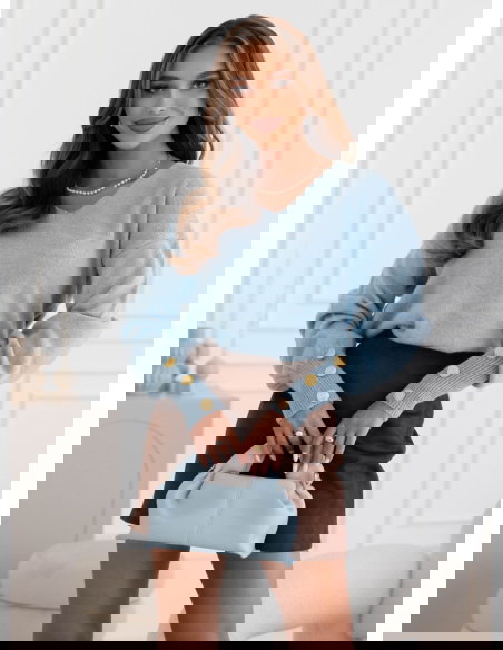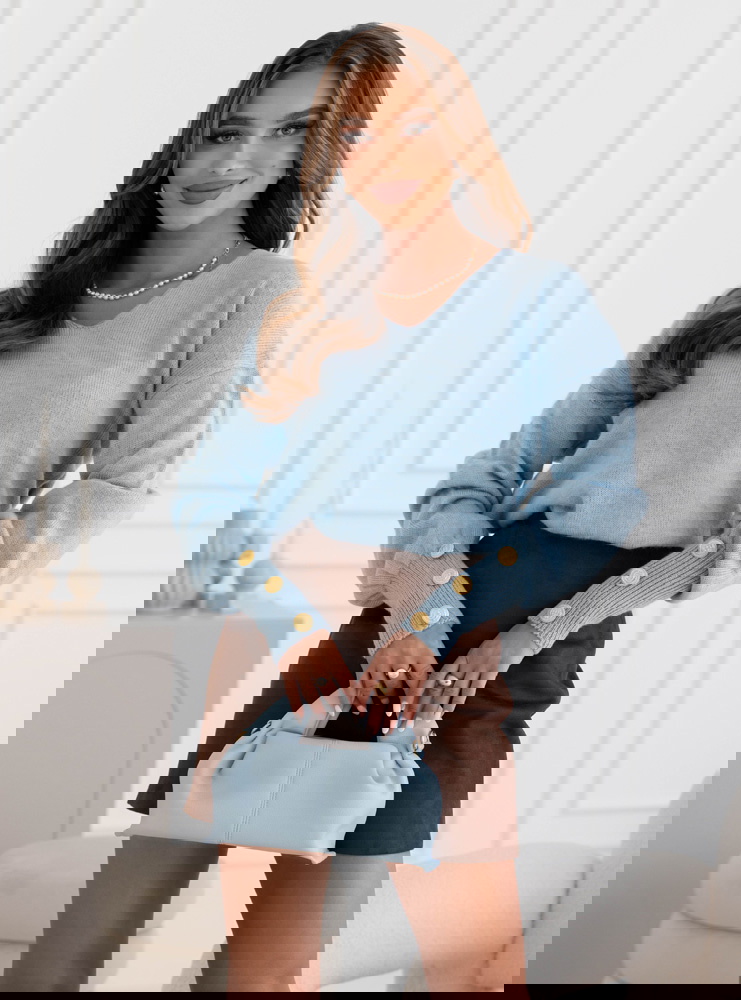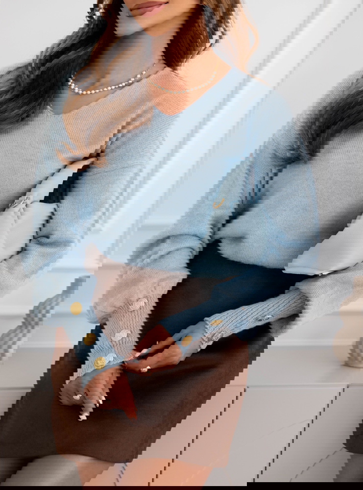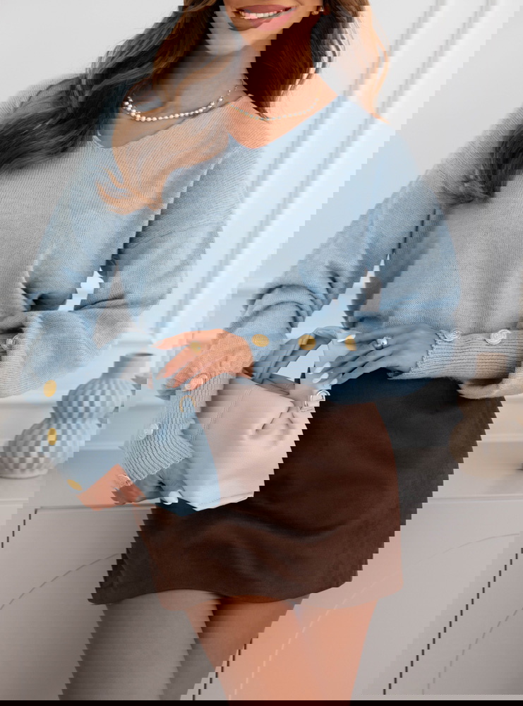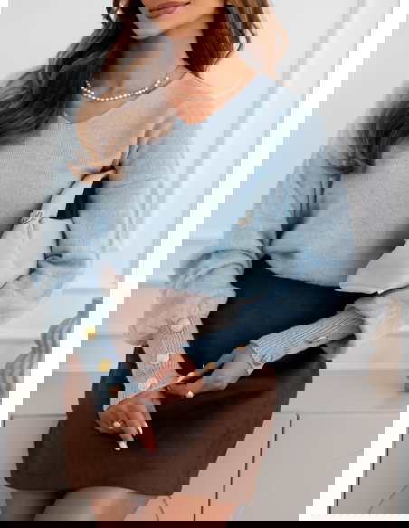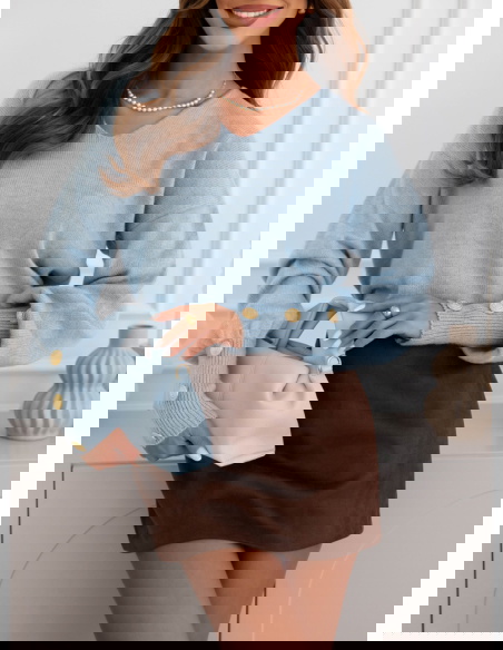 Błękitny sweter z ozdobnymi guzikami na rękawach Stacyann
