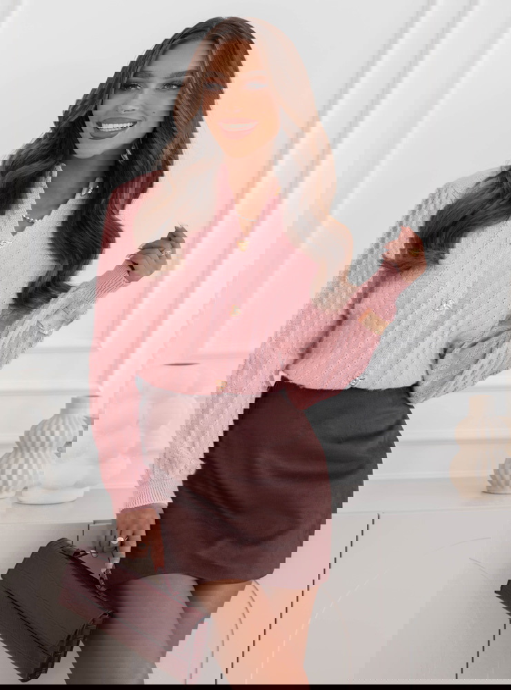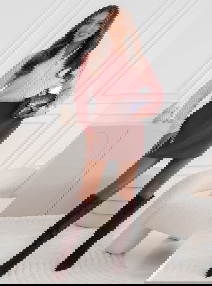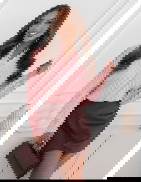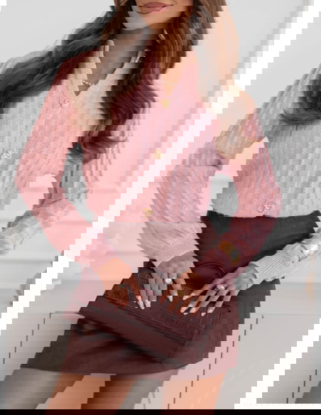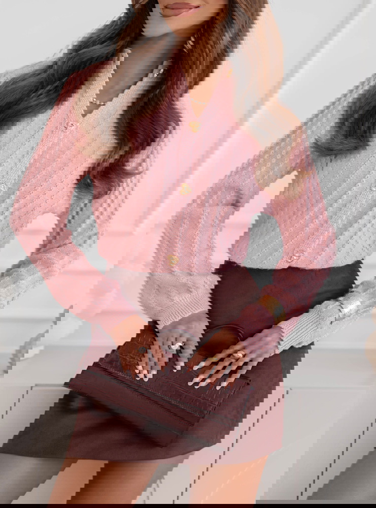 Pudrowy sweter zapinany na guziki Francinaa to propozycja, która łączy w sobie dziewczęcy urok i elegancję. Jego subtelny kolor dodaje lekkości i świeżości każdej stylizacji, wprowadzając delikatny, romantyczny akcent. To model, który zachwyca swoją prostotą, a jednocześnie przyciąga uwagę wyjątkowymi detalami. Guziki w złotym odcieniu stanowią elegancki akcent, który pięknie komponuje się z pastelowym pudrowym różem. Sweter ma uniwersalny charakter, dzięki czemu świetnie sprawdzi się zarówno w codziennych, jak i bardziej eleganckich zestawach. Klasyczny fason podkreśla jego ponadczasowy styl, a jednocześnie pozwala na różnorodne możliwości stylizacji. To ubranie, które wnosi do garderoby powiew subtelnej kobiecości. Pudrowy odcień doskonale pasuje do jesienno-zimowych klimatów, przełamując ciemniejsze barwy sezonu. To model, który sprawi, że każda stylizacja nabierze wyjątkowego charakteru.
