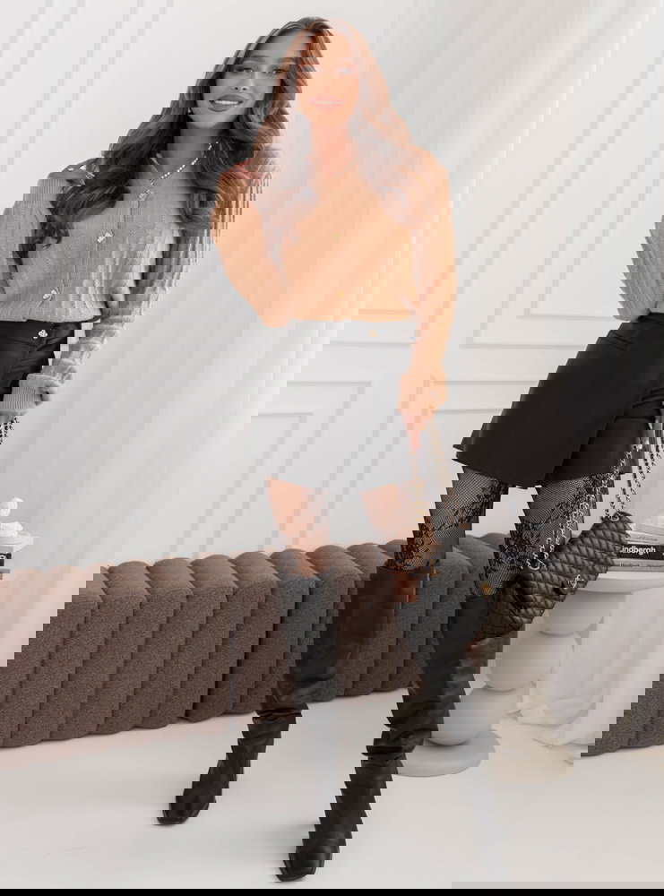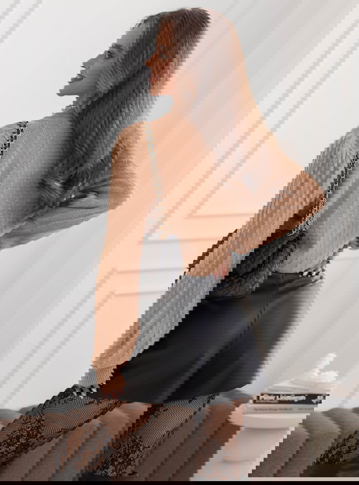 Sweter zapinany na guziki Francinaa - mocha mousse to klasyka, która zyskuje wyjątkowego charakteru dzięki starannie dobranym detalom. Jego elegancki odcień mocha mousse wprowadza do stylizacji ciepło i subtelną wyrafinowaną nutę. Prosty krój sprawia, że jest niezwykle uniwersalny i pasuje do wielu okazji. Złote guziki w kształcie serc stanowią ozdobny akcent, który nadaje całości romantycznego i kobiecego charakteru. To model, który łączy prostotę z nutą oryginalności, przyciągając spojrzenia drobnymi, ale efektownymi detalami. Sweter ten świetnie sprawdzi się w jesiennych stylizacjach, dodając im przytulności i elegancji. To propozycja dla kobiet, które cenią sobie klasyczne rozwiązania z nowoczesnym akcentem. Jego subtelny urok sprawia, że nawet codzienny outfit nabiera wyjątkowego charakteru. To element garderoby, który nie przytłacza, a podkreśla naturalne piękno.