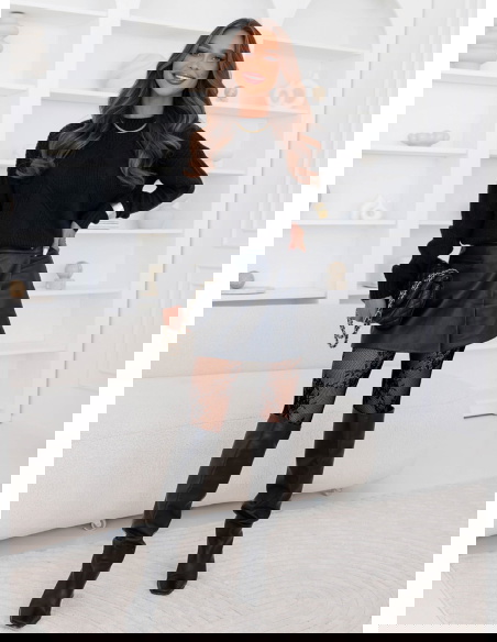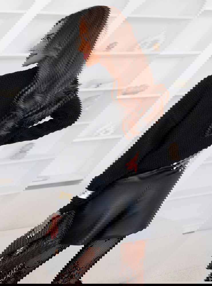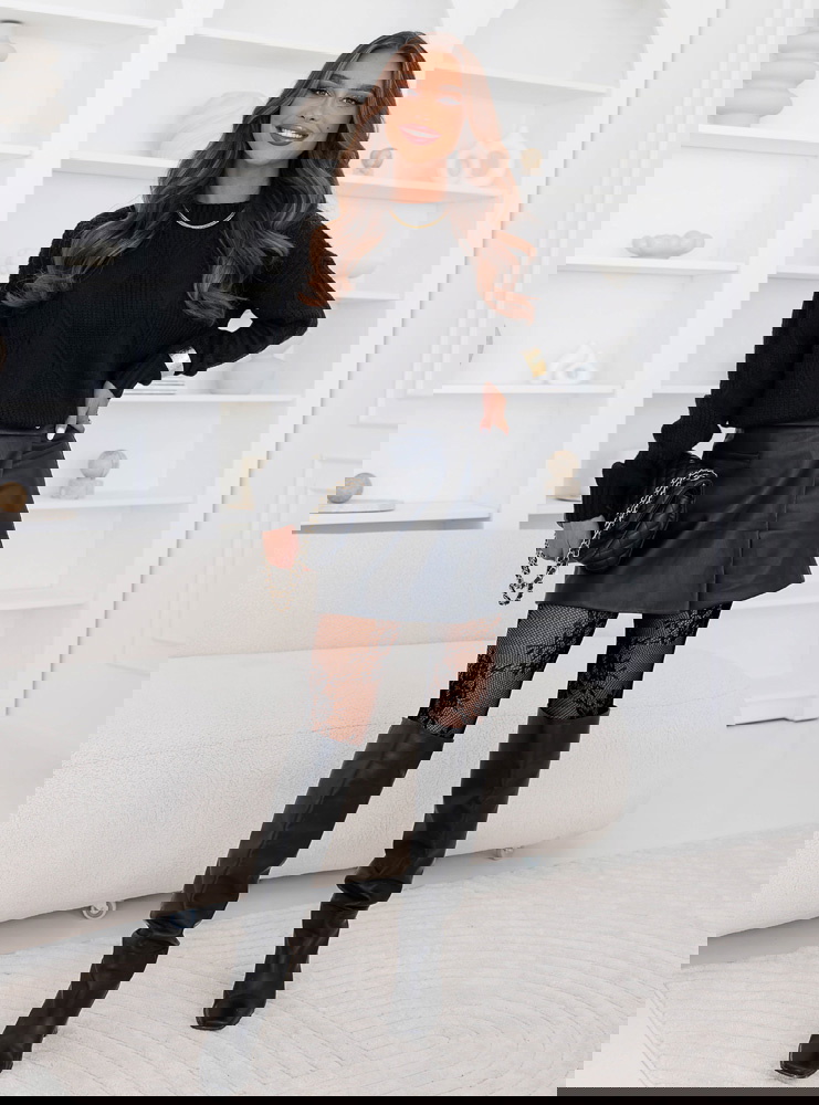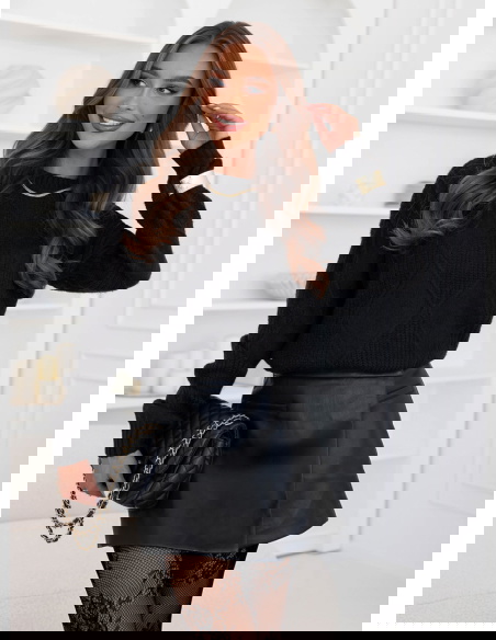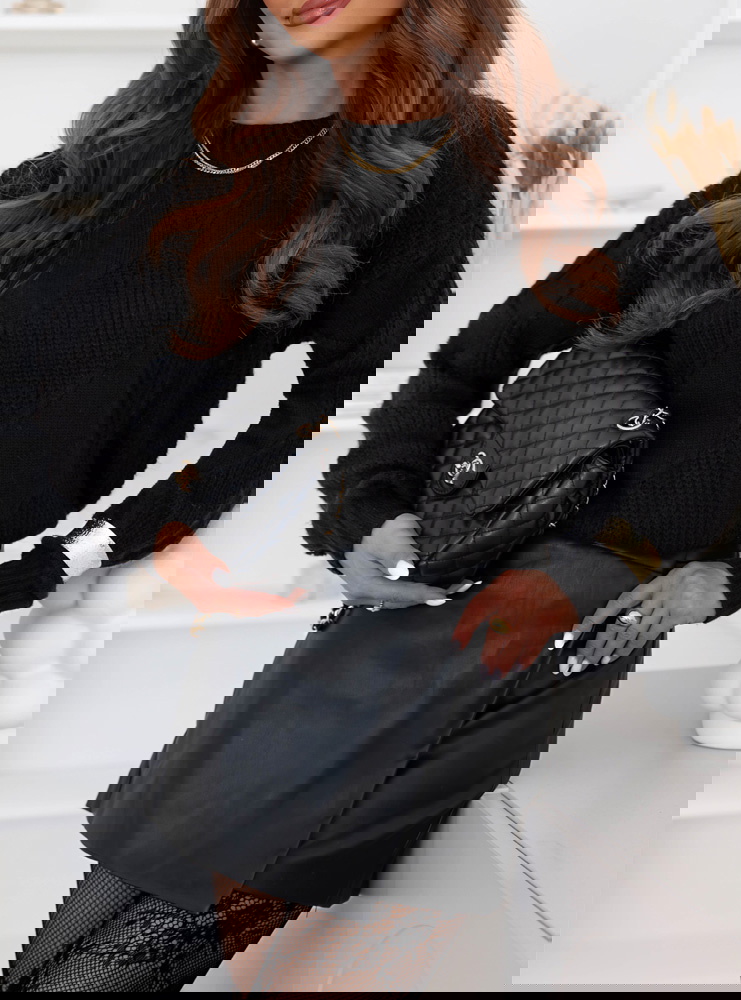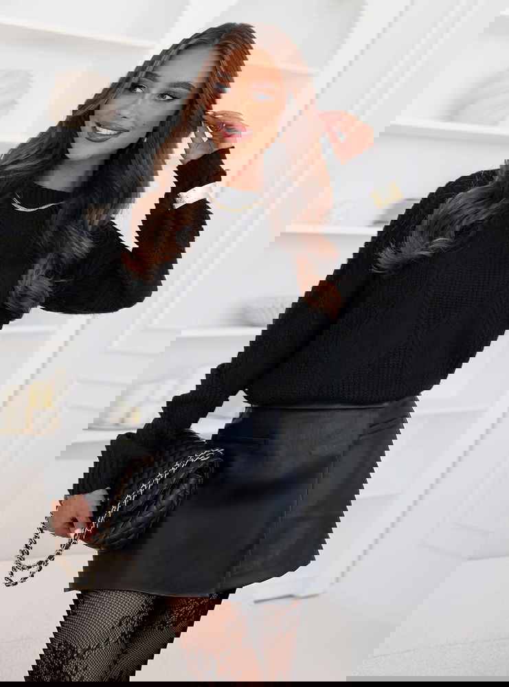 Czarny sweter z ozdobnym splotem Rocksan